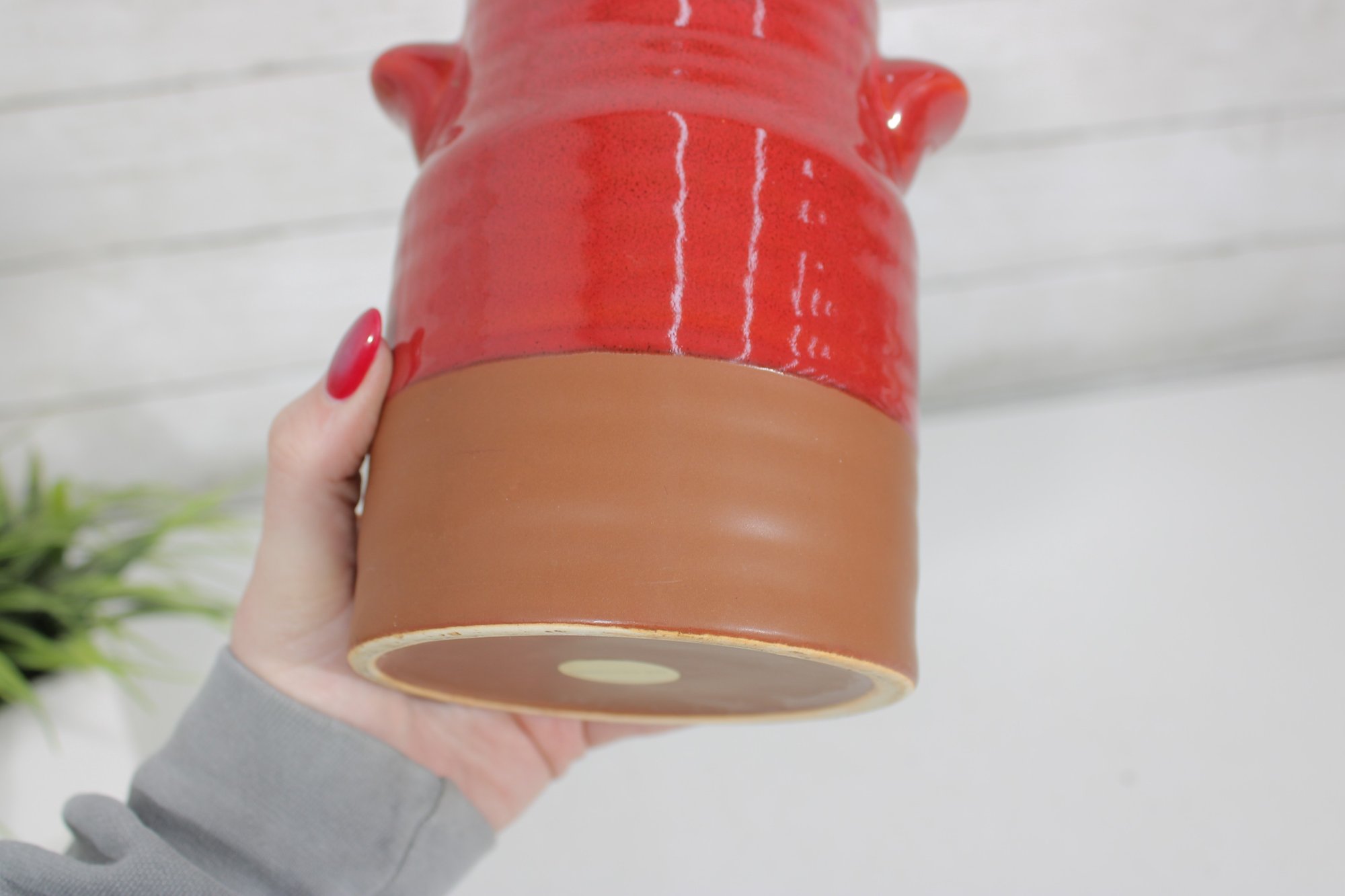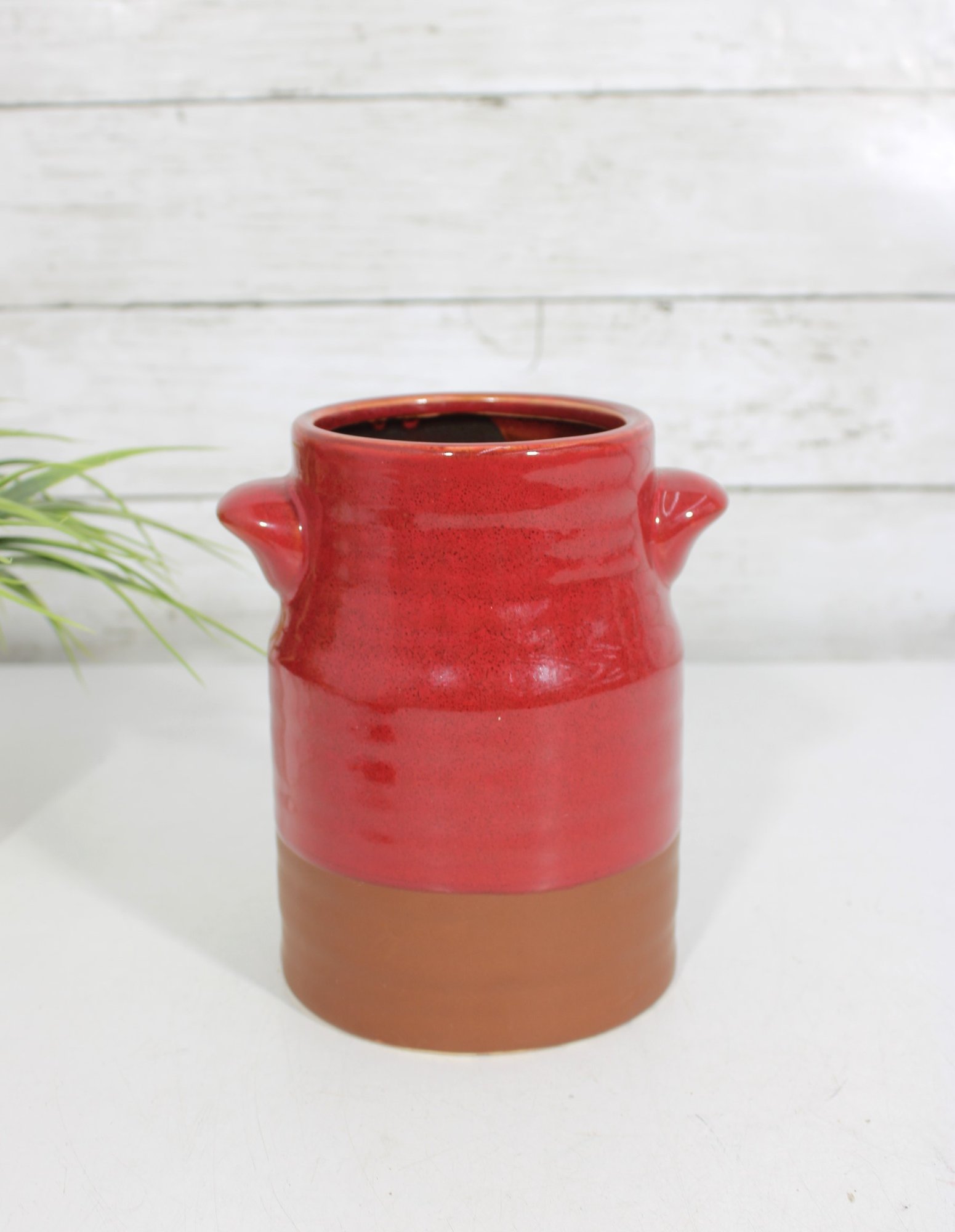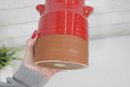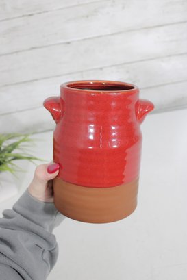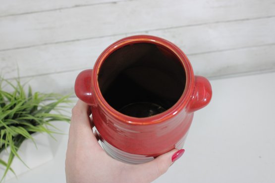 Add a pop of rustic charm to your kitchen with this vintage hand-glazed stoneware crock. Featuring a rich red glazed upper half and a natural terracotta base, this piece blends warmth and functionality with classic farmhouse appeal.