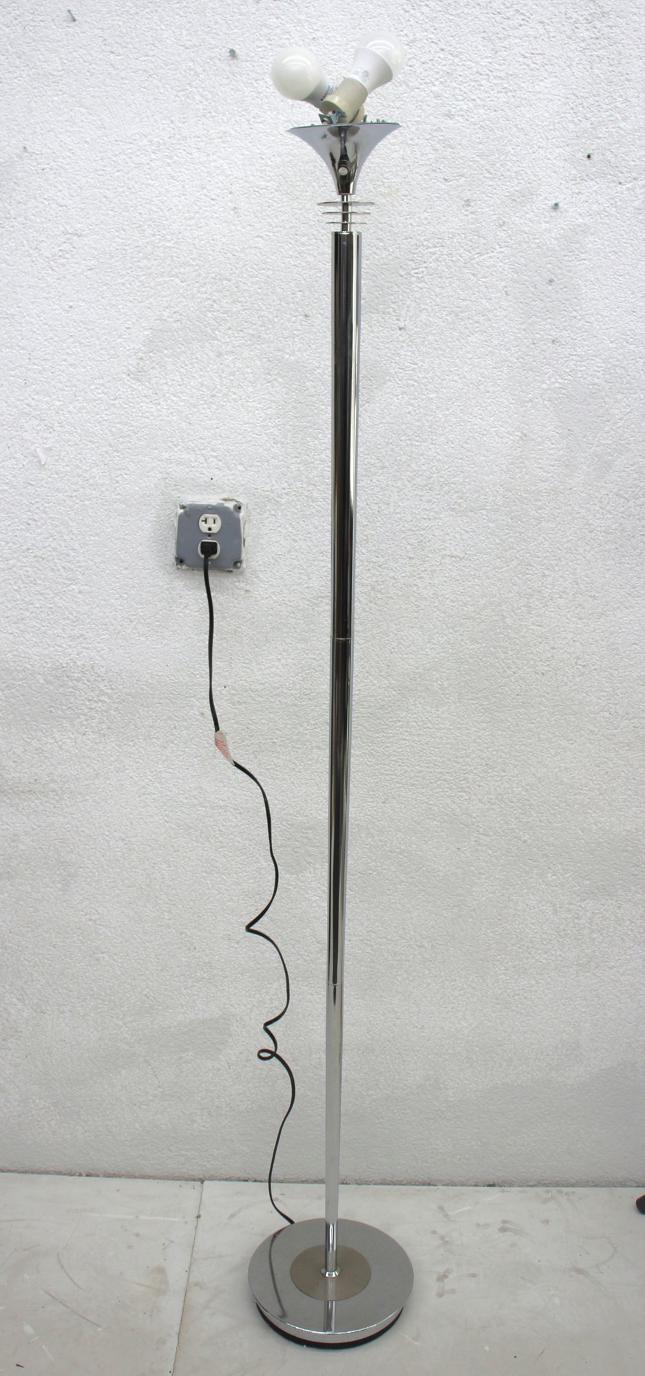 Vintage 71 Chrome Torchiere Floor Lamp No Shade, Modern Industrial Design