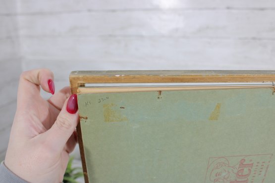The piece is matted and housed in a light-toned frame that complements the subtle color palette, making it an ideal addition to modern, minimalist, or retro-inspired interiors.