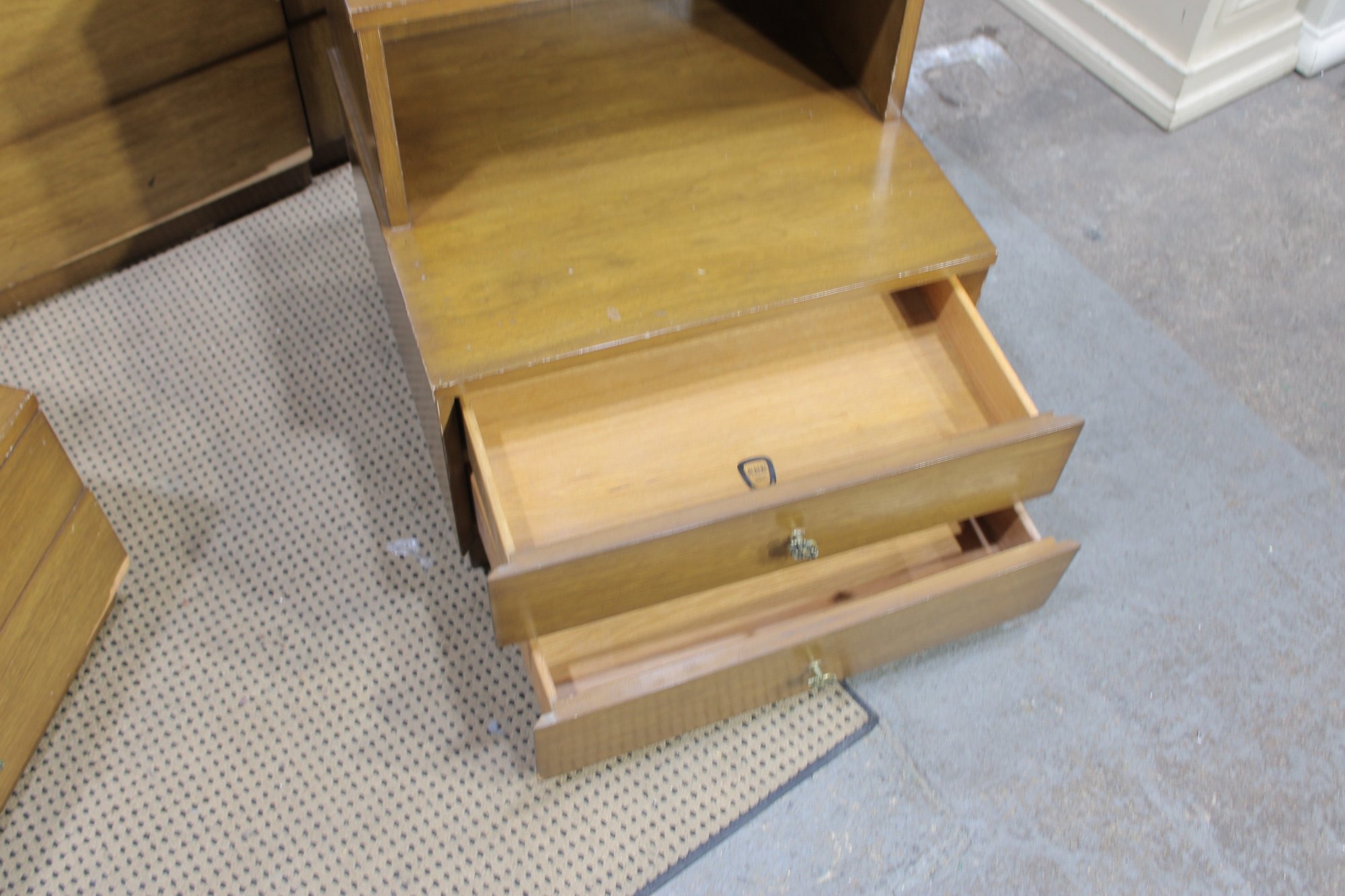 Each features a drawer and open shelf