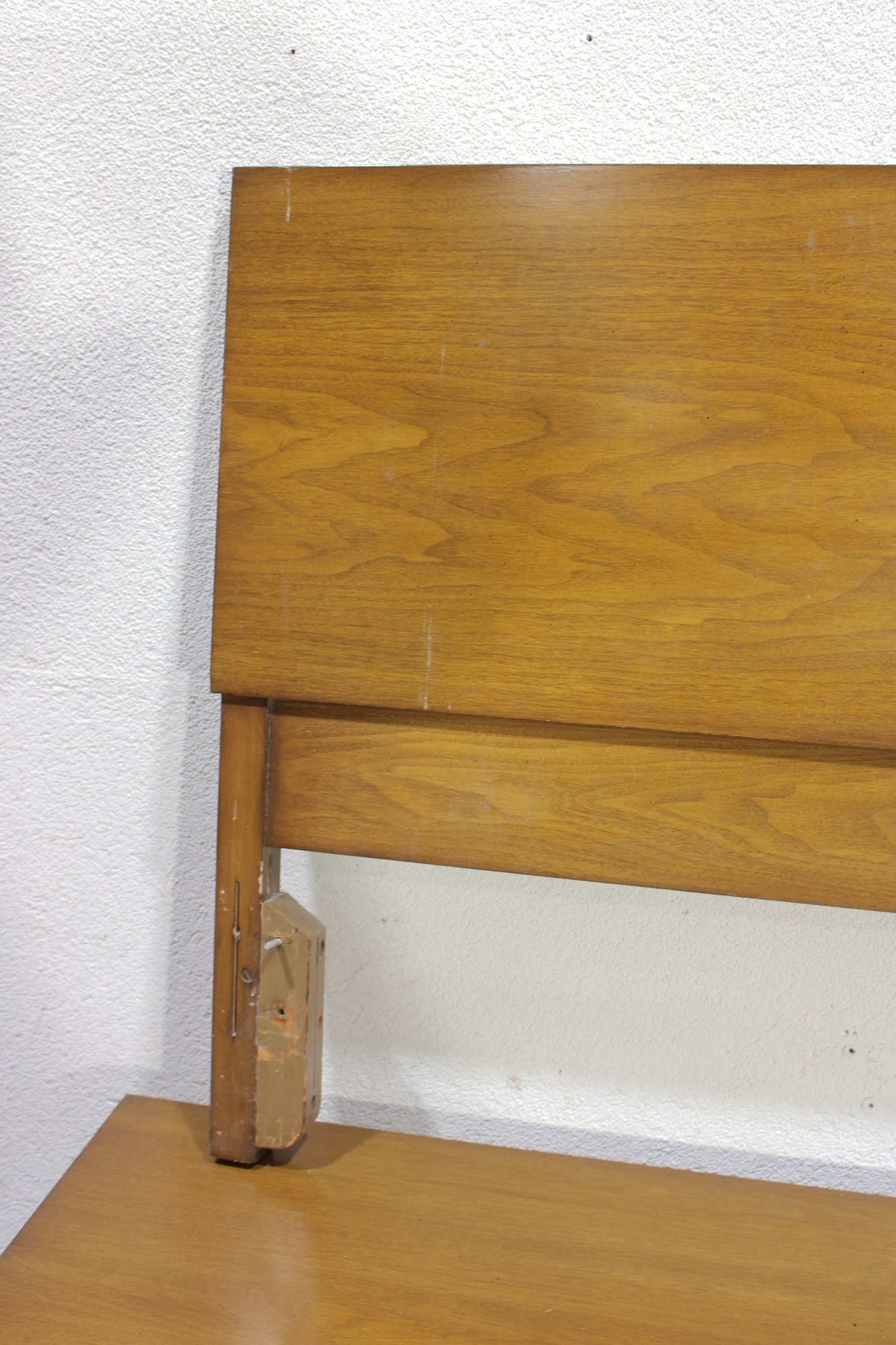 The wood grain is attractive throughout, and the streamlined design makes this set ideal for mid-century modern, vintage, or transitional interiors. Original Albert manufacturer label is present, adding authenticity and collectible appeal.