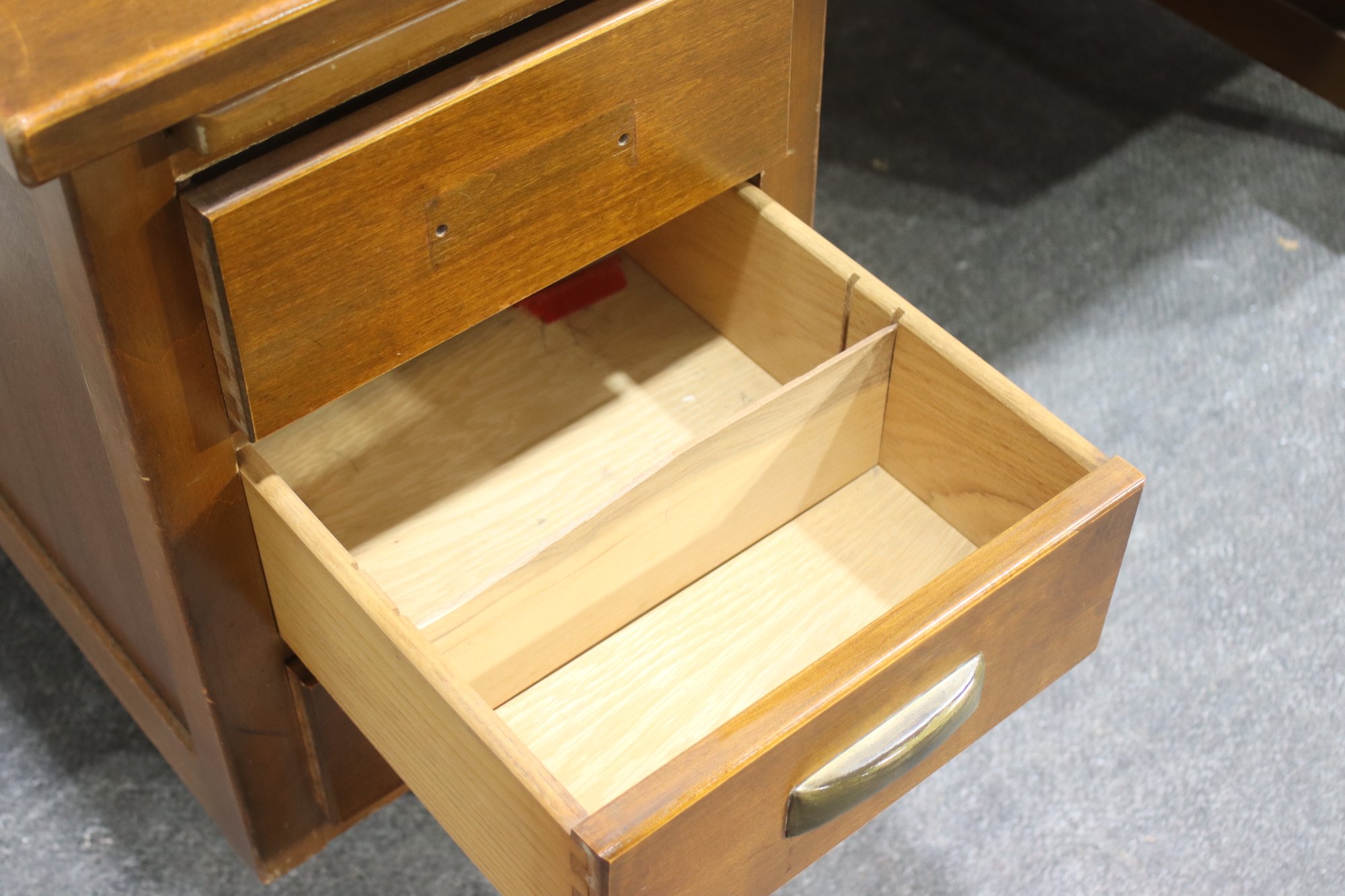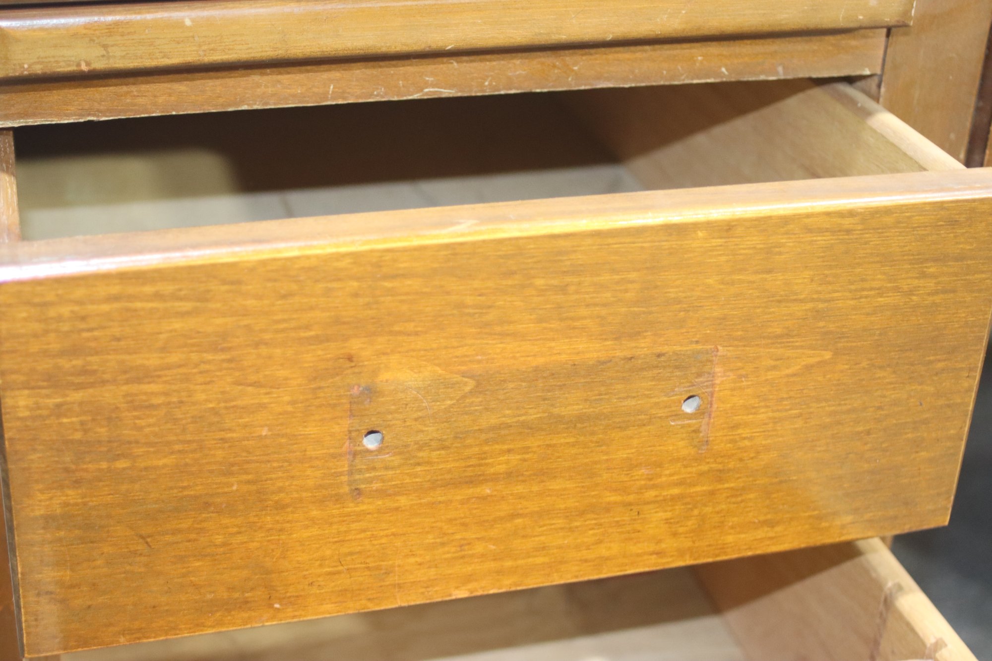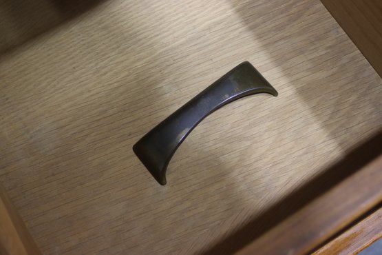 Brass hardware (one handle is stored inside a drawer)