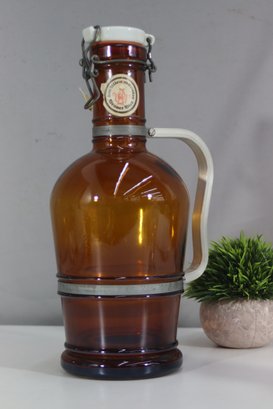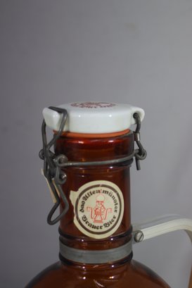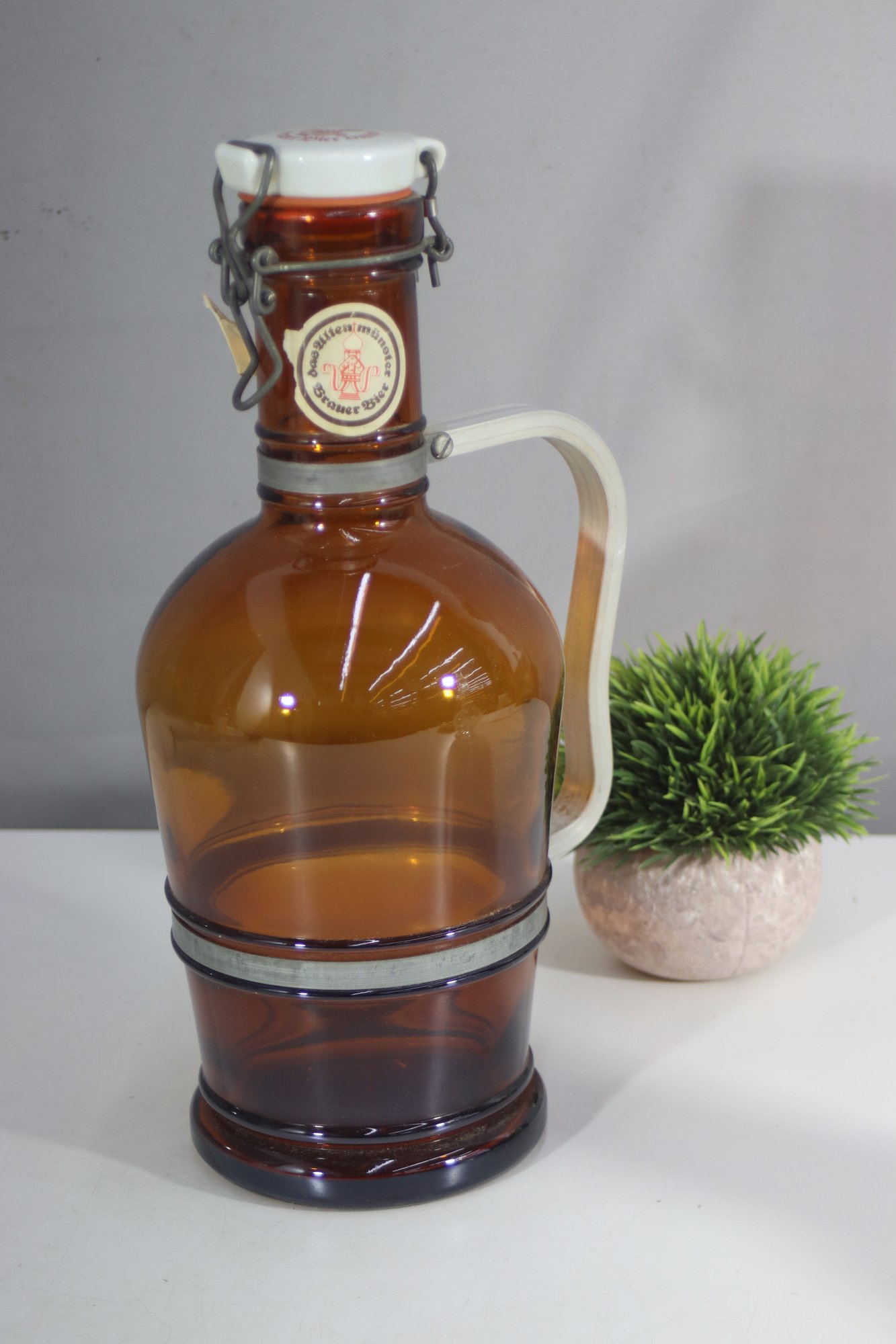 German brewing tradition to your collection with this vintage Altenmünster Brauer Bier growler, featuring a classic amber glass body, ceramic swing-top lid, and metal clasp closure. A perfect display piece for collectors of European beer memorabilia or a functional addition to your home bar.