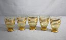 Each tumbler is a beautiful example of hand-blown glass craftsmanship from Romania, showcasing elegant gold banding that adds a touch of sophistication to any dining or display setting.