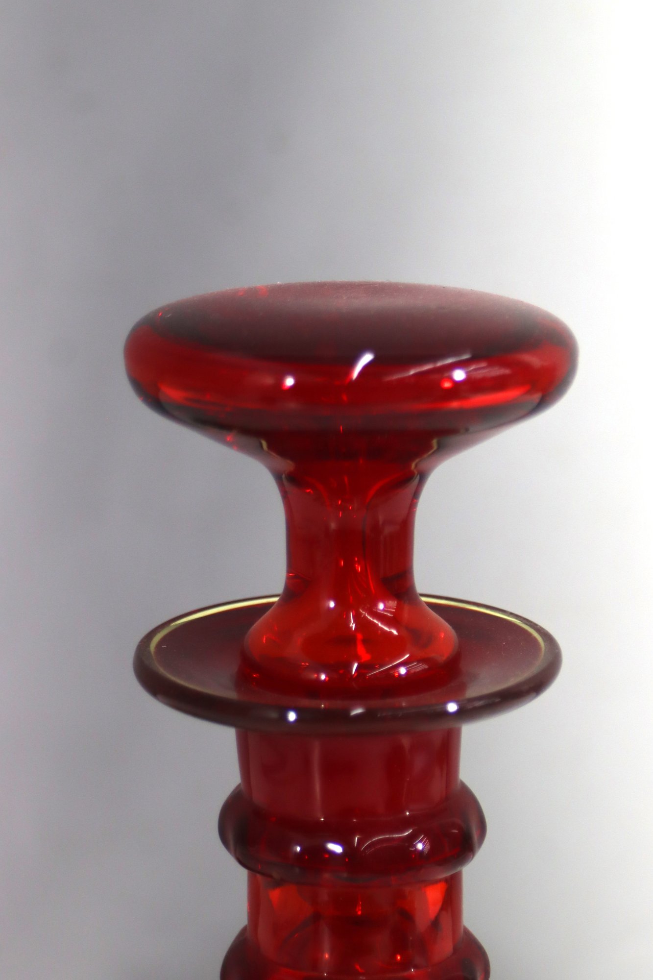 Matching glass stopper with a smooth, rounded design