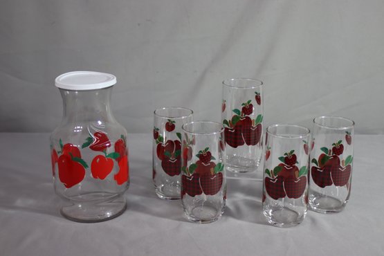 Vintage Anchor Hocking Checkered Apple Tumblers And Juice Jar
