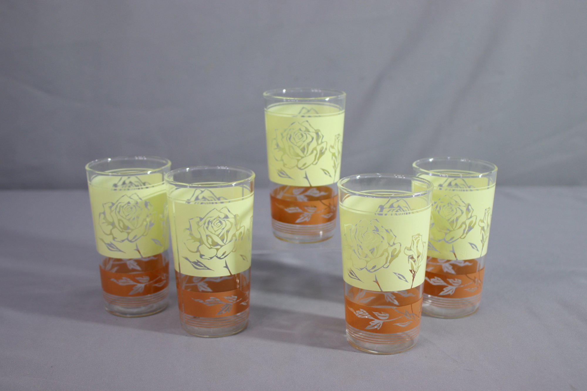 VINTAGE ANCHOR HOCKING NOS 5 Juice Glasses - FLORAL ROSES