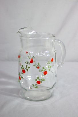 Vintage Anchor Hocking Red Rose Glass Pitcher