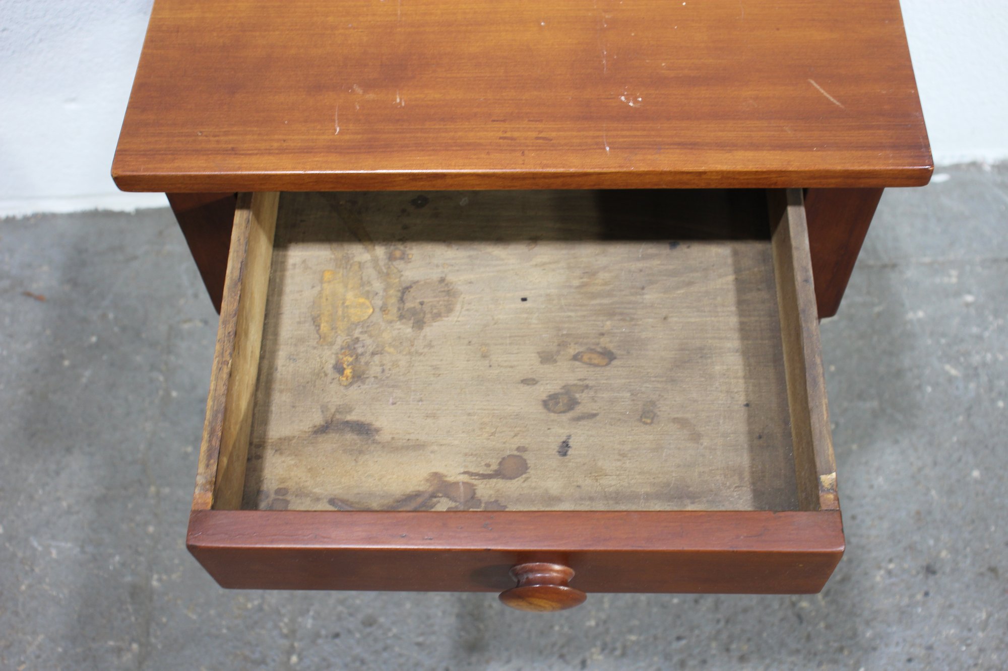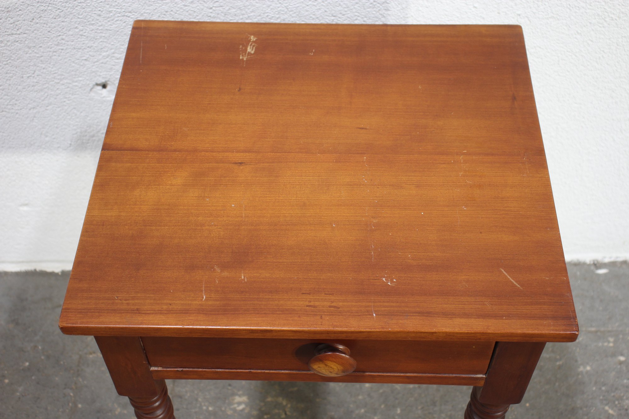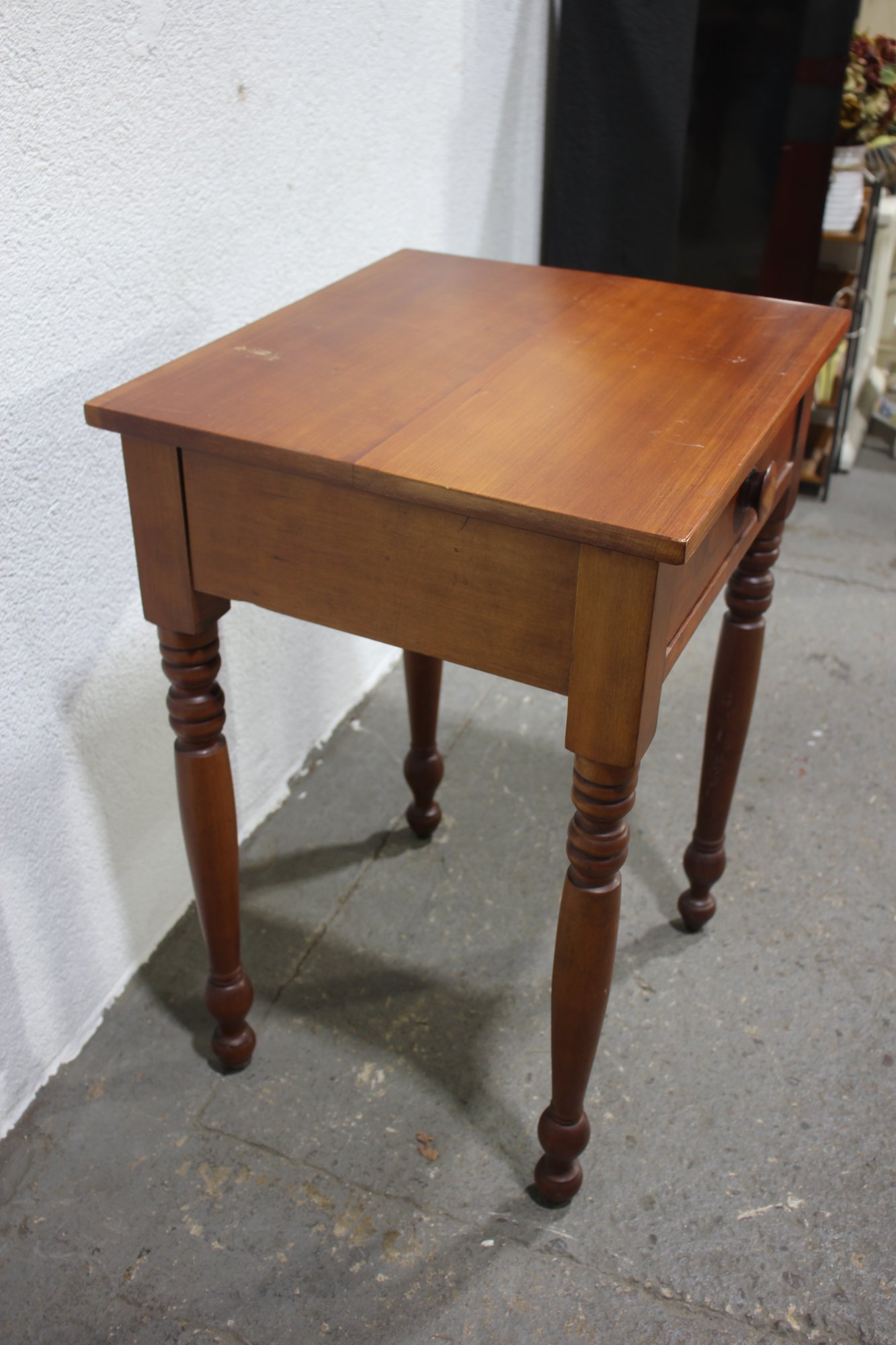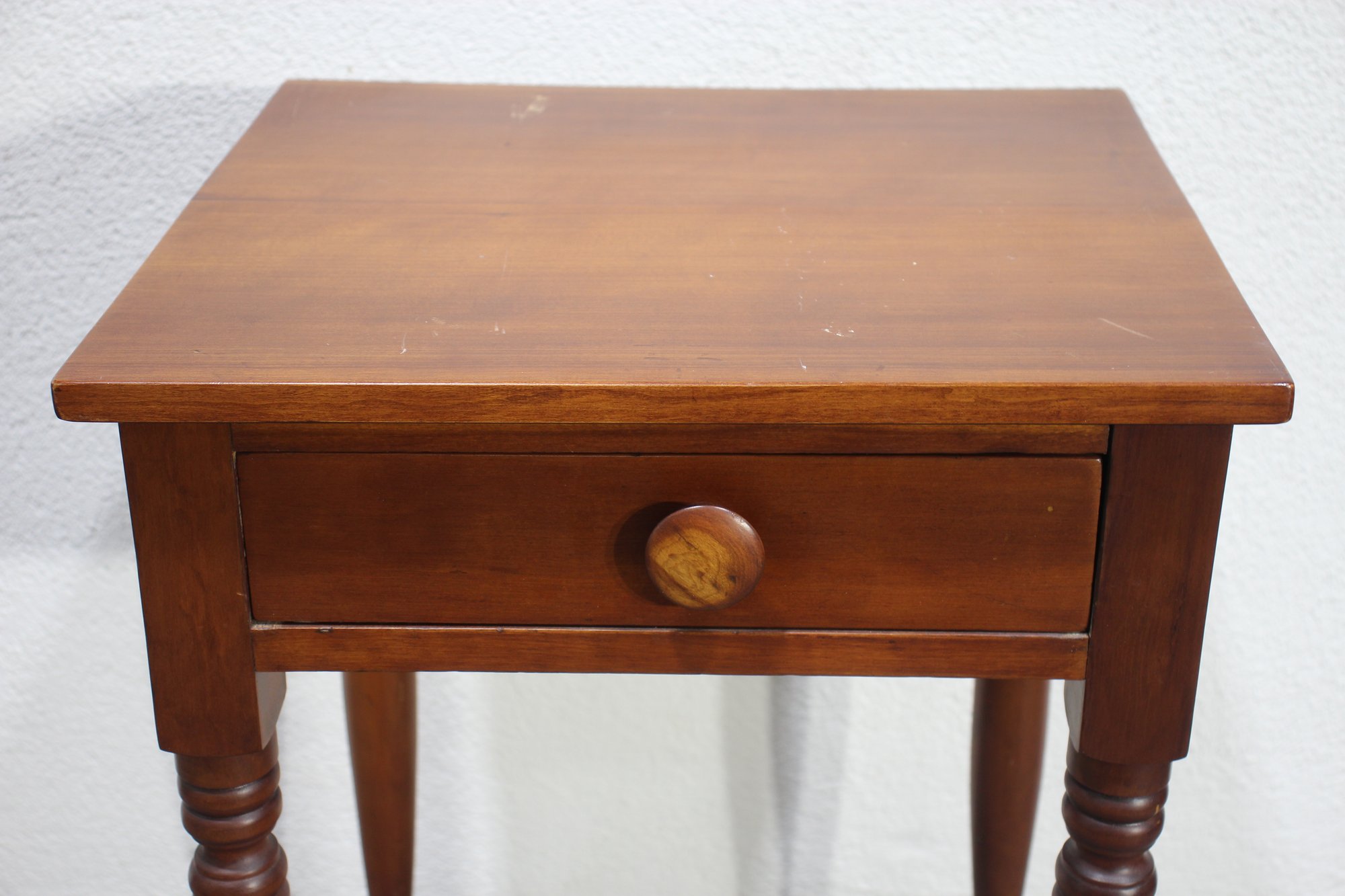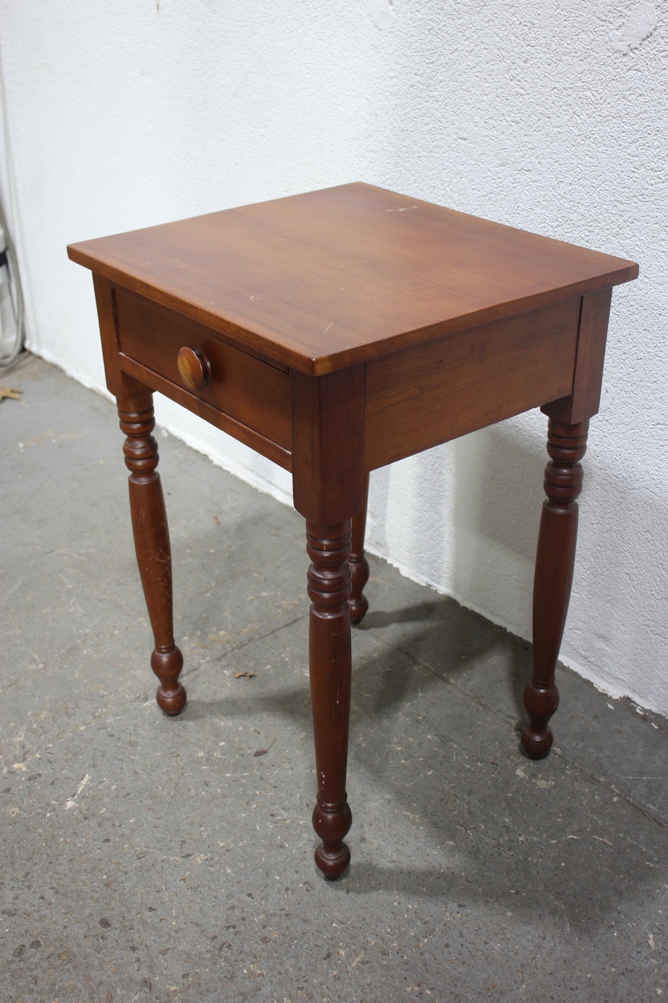 Vintage, Antique, Cherry One Drawer nightstand with turned legs and dovetailed drawer.