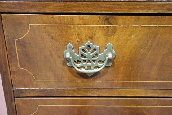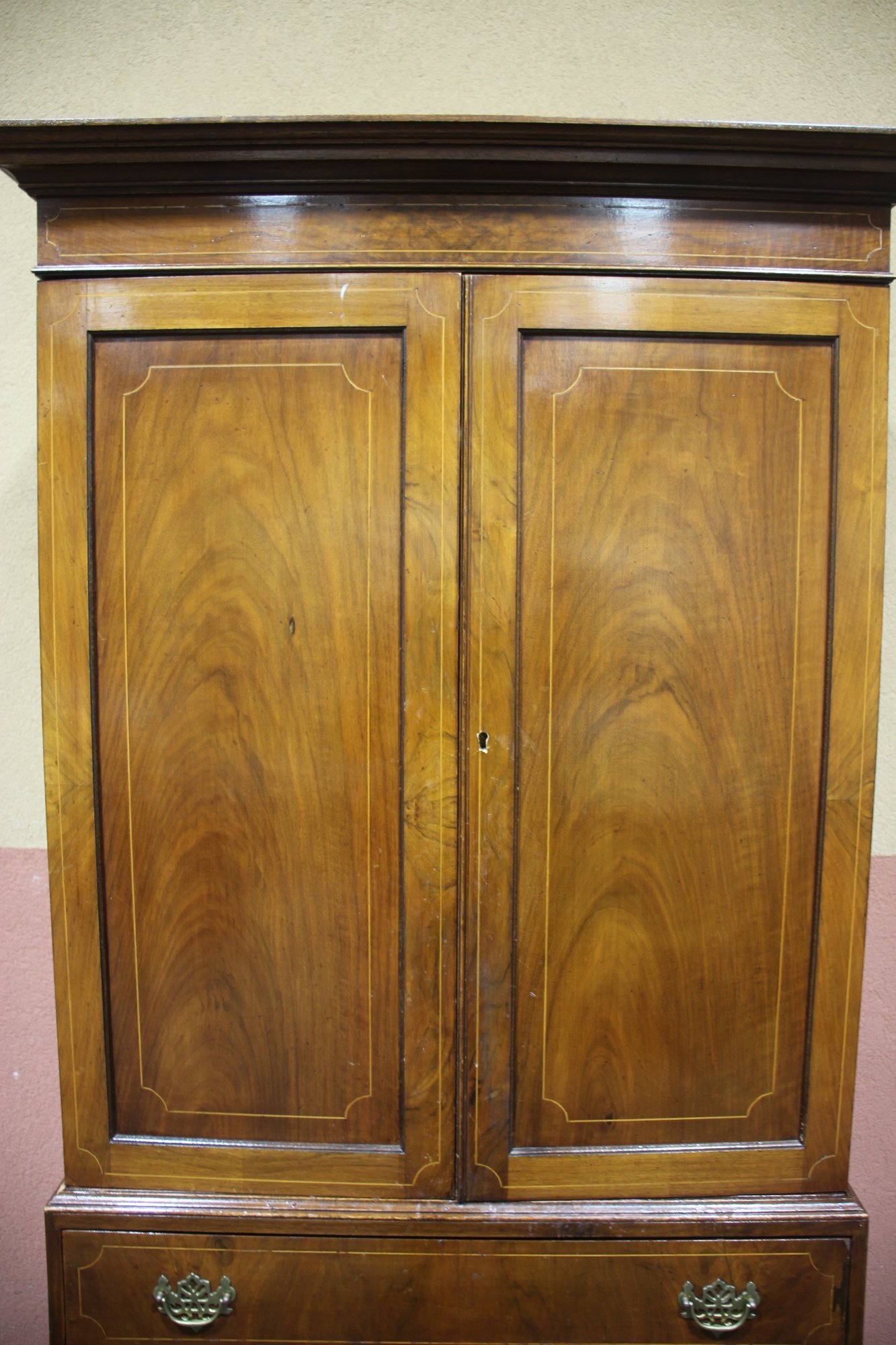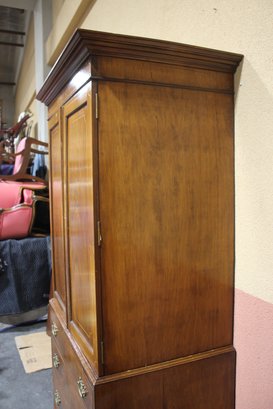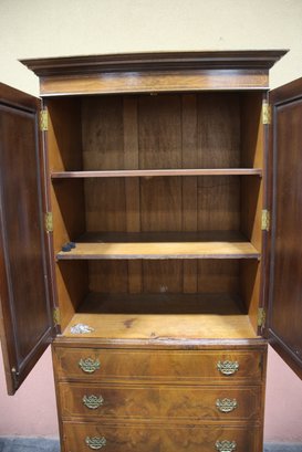 Vintage, Antique Oak Cupboard. Featuring four drawers, beautiful molding and decorative Brass pulls.