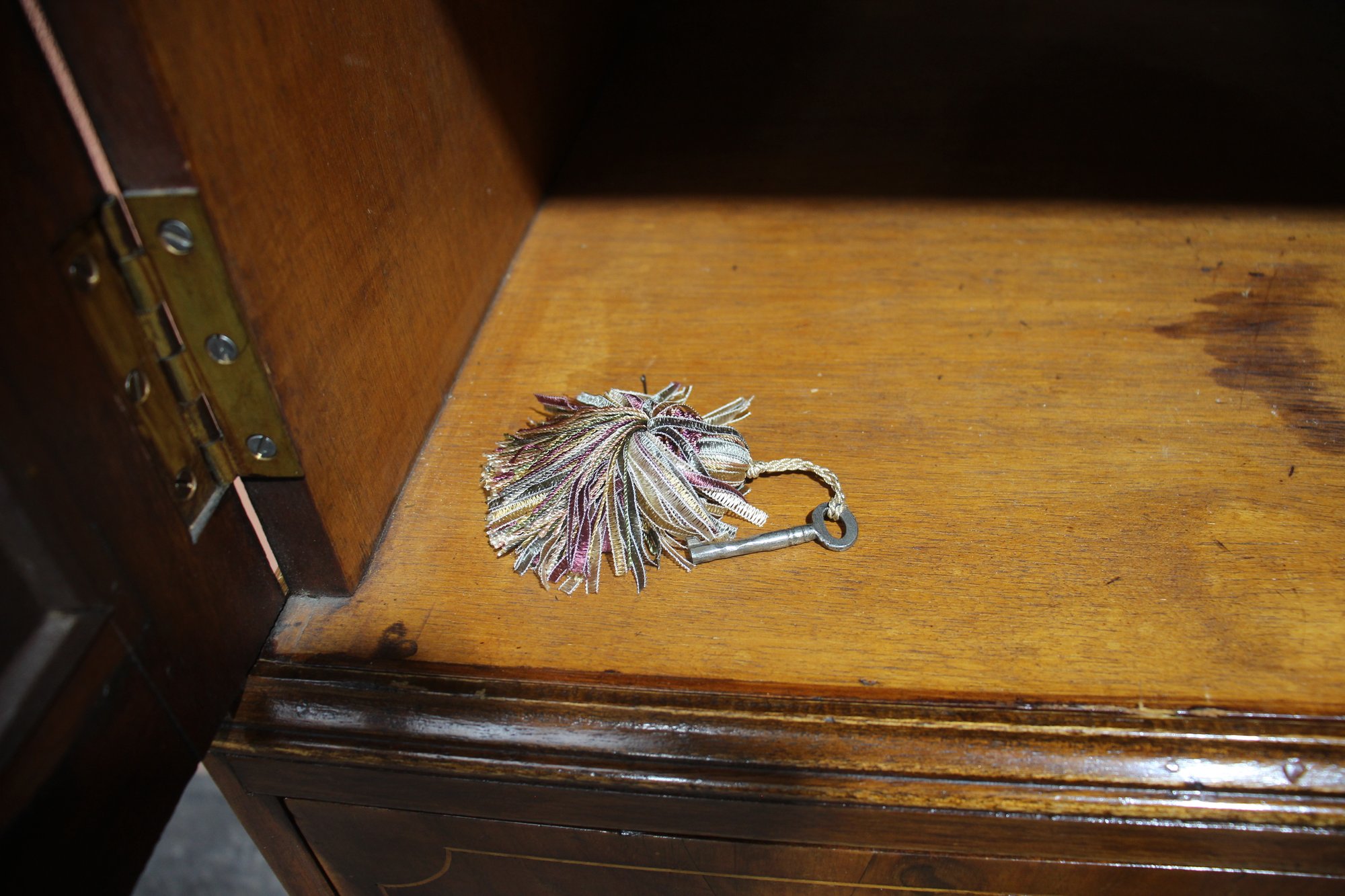 The top part is divided into three sections and has a key for the locked side by side doors. In Good Used Vintage condition for age, shows signs of wear commensurate with age.