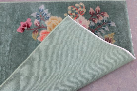 Add a soft, elegant touch to your space with this beautiful green floral area rug, featuring a delicate botanical design on a rich green background.