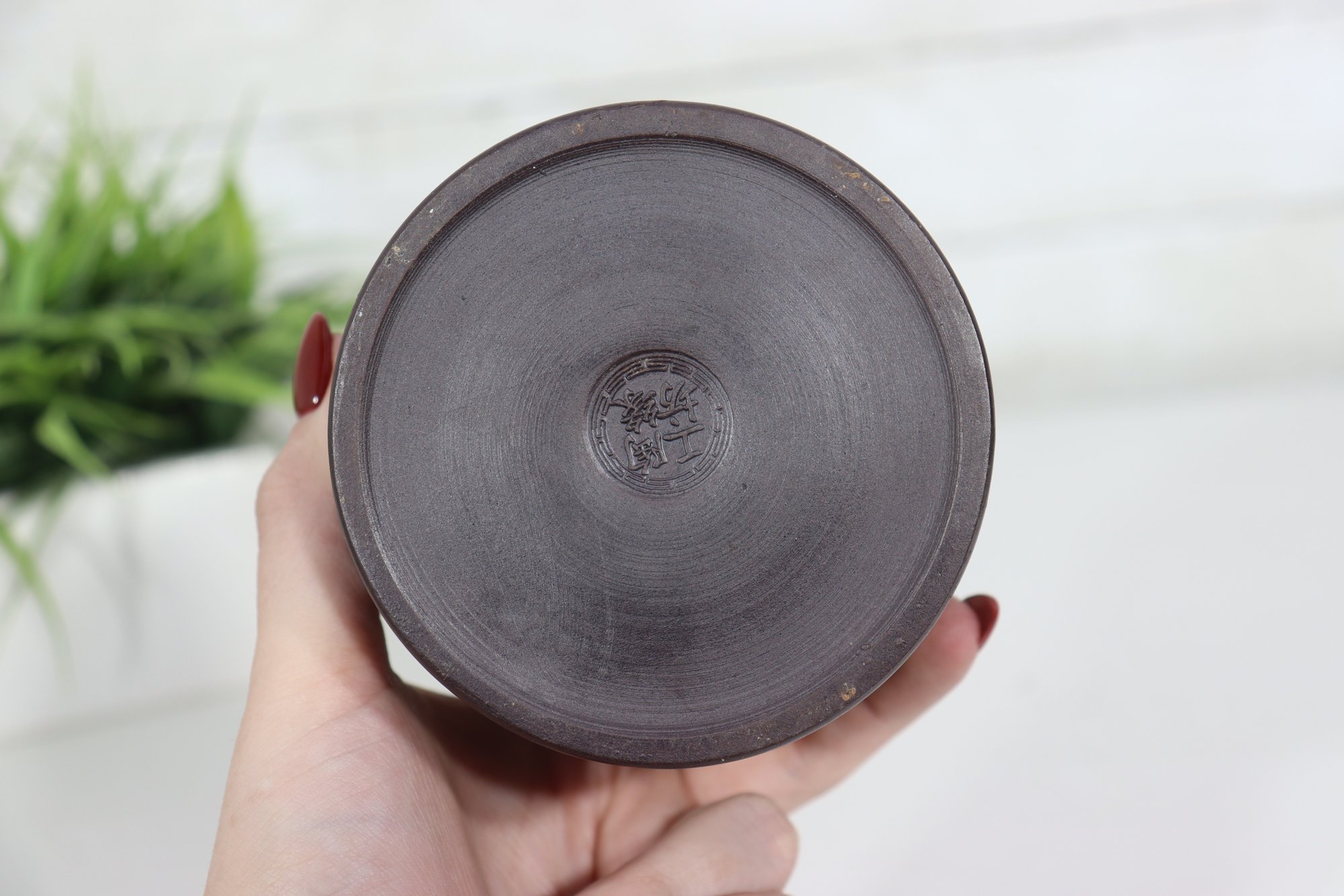 Great display piece for Asian décor styling, tea storage, trinket storage, small kitchen canister use, or collectible pottery shelf décor. Nice matte stoneware finish and strong form.