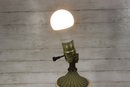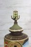 The lamp is mounted on a heavy brass base and retains its original-style socket and switch. When lit, it makes a striking accent piece, perfect for adding character to a living room, den, bedroom, or eclectic interior.