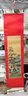 Beautiful vintage hanging scroll artwork featuring a traditional Asian landscape scene. The scroll measures approx. 35” long x 7.5” wide. The painting depicts serene mountains, trees, water, and two figures beneath a large tree – soft tones and fine detail. Mounted on red fabric textile border with hanging cord at top.