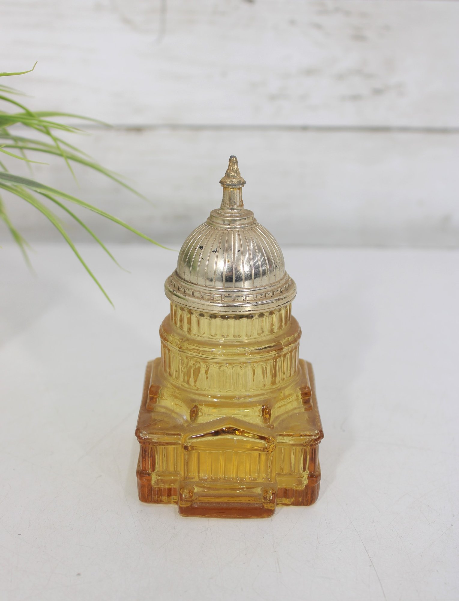 Originally contained aftershave or cologne, often part of the "Historic Landmark Series" from the 1970s.