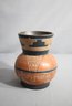 a remarkable tribute to the rich and vibrant history of Aztec and Mayan cultures. Exquisitely handcrafted from terracotta, this piece showcases traditional motifs and designs synonymous with ancient Central American art. The vase features a bold, spherical base with a narrowing neck, embellished with intricate patterns and symbols in a classic black-on-terracotta color scheme.