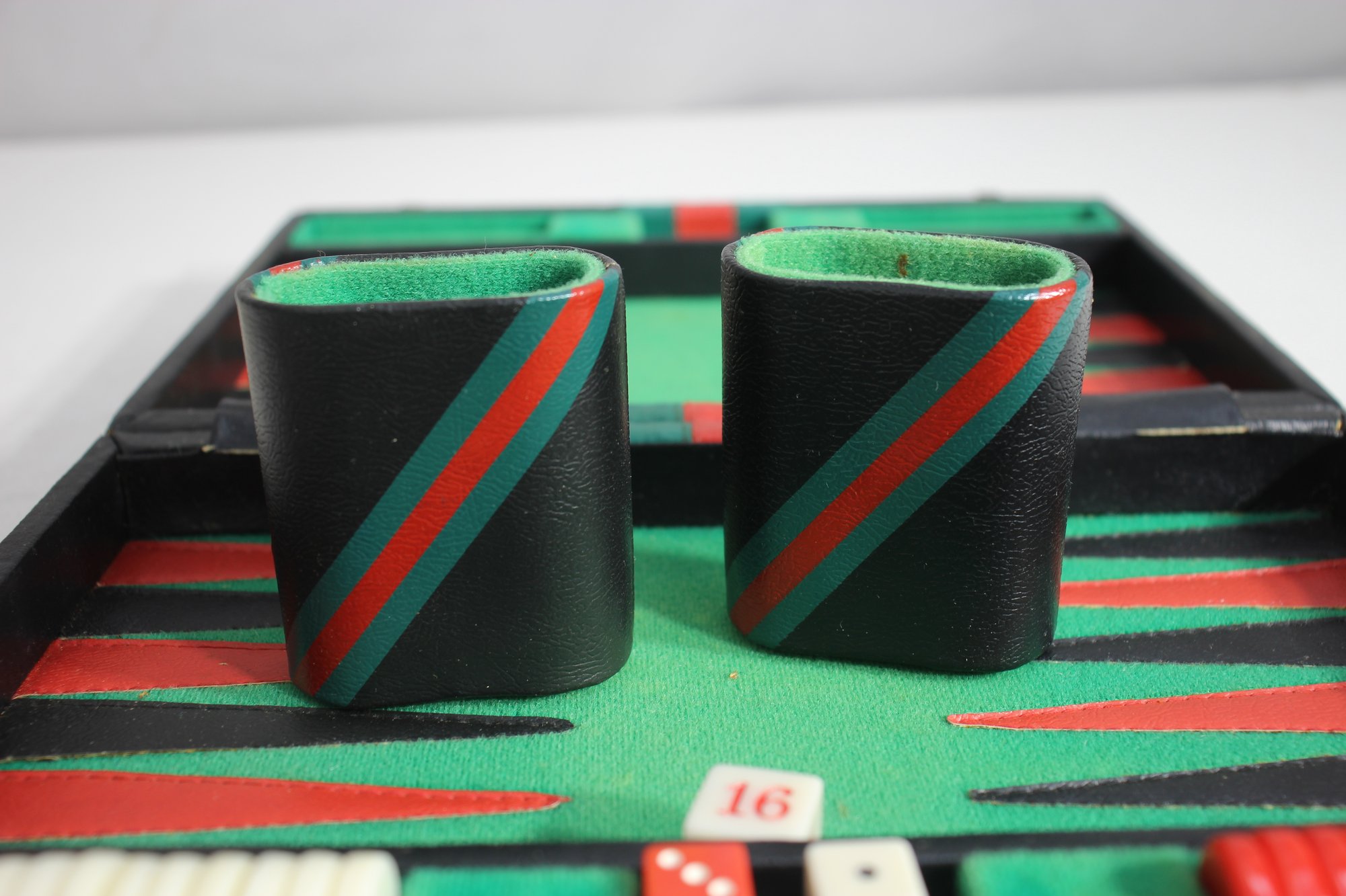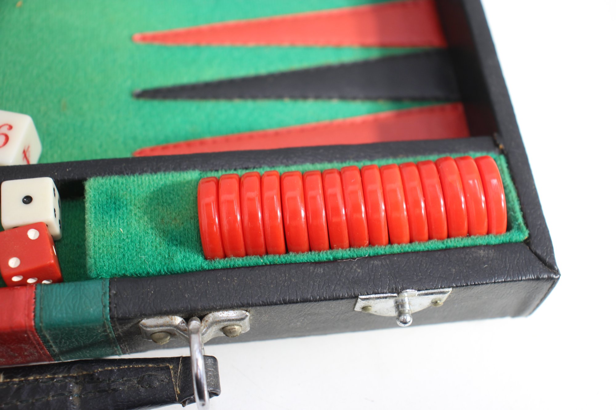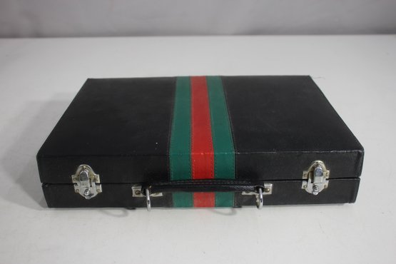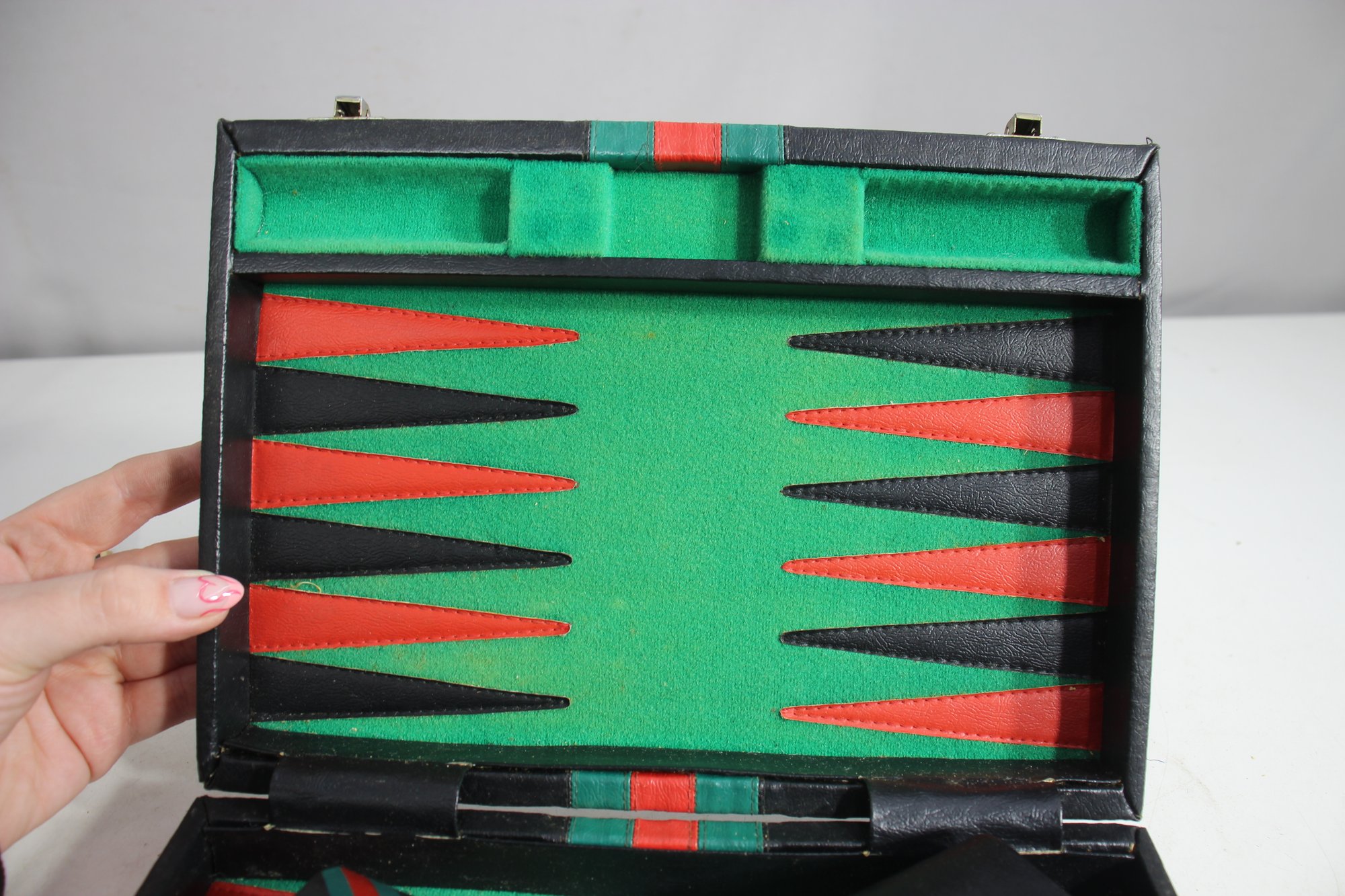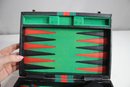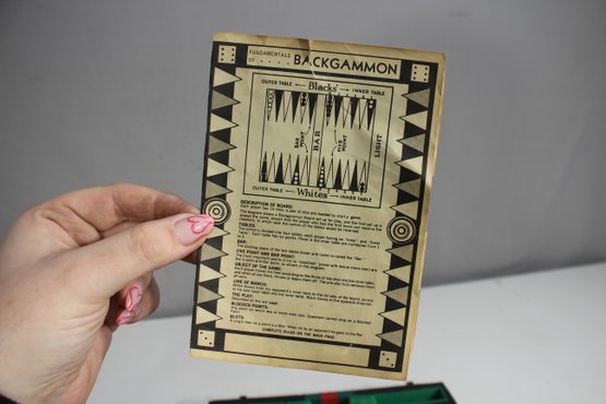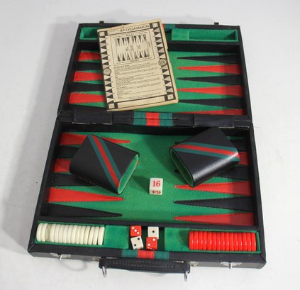Vintage Backgammon Set In Black Leatherette Case Complete With Instructions