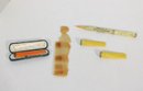 vintage vanity accessory lot featuring several charming Bakelite and celluloid items from the early to mid-20th century. These pieces showcase beautiful marbled colors and classic materials popular during the Art Deco and mid-century eras.