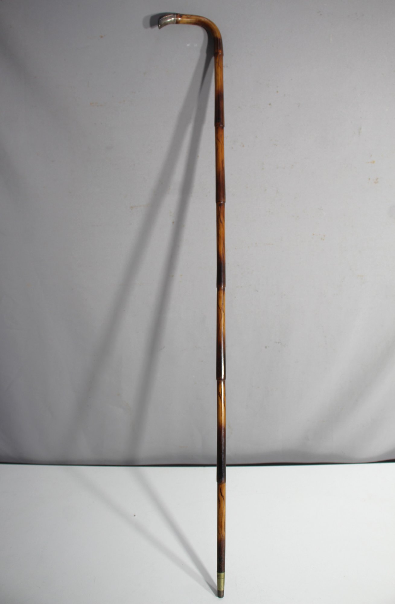 Handle: The handle of the cane is wrapped with a sterling silver collar, marked with "Sterling," which adds an elegant touch to this vintage walking stick.