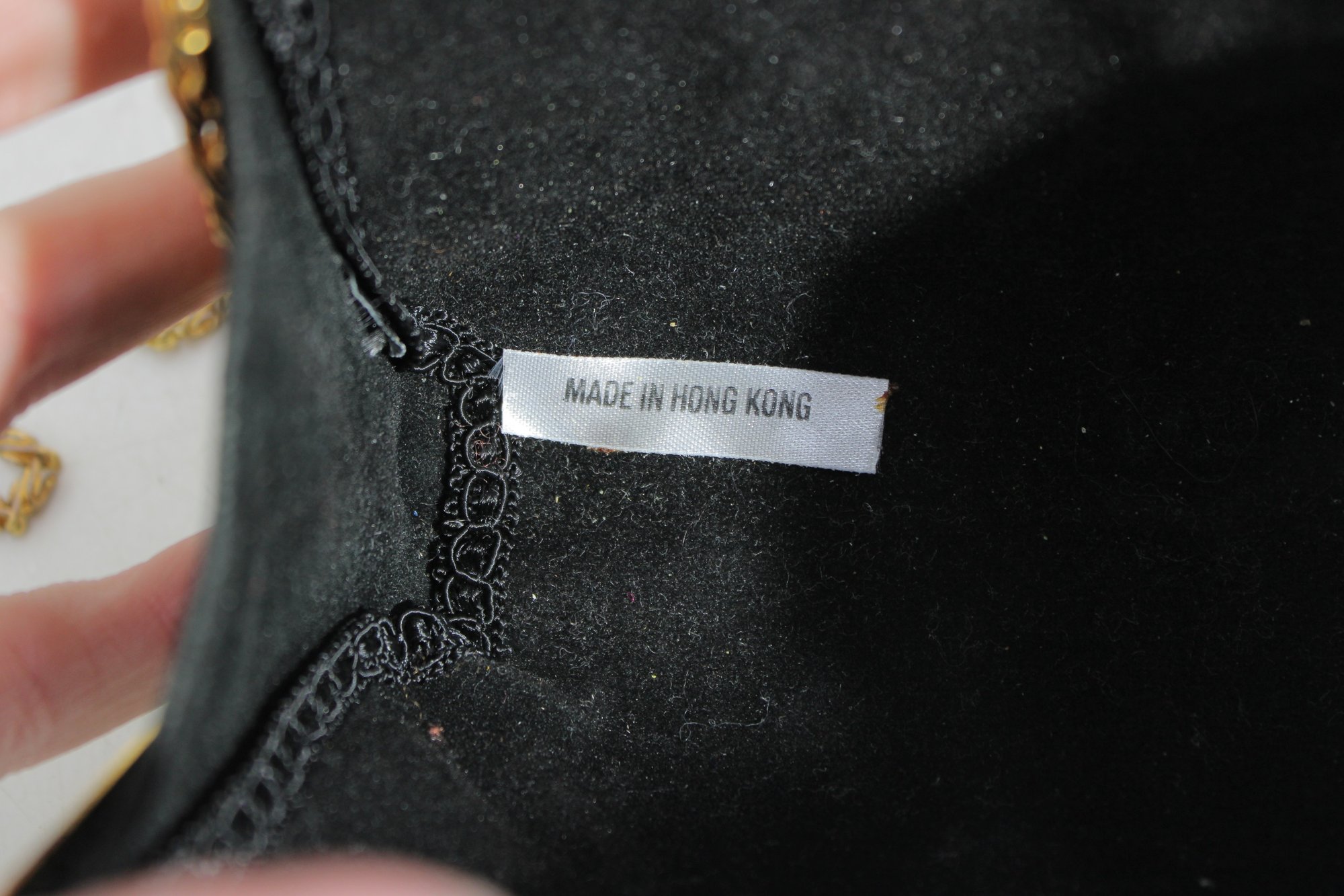 Interior label reads “Made in Hong Kong,” dating this piece to the mid-to-late 20th century.