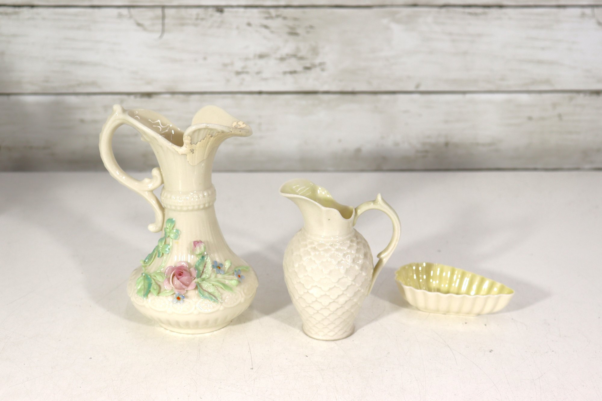 This charming trio is perfect for collectors of Belleek, Irish ceramics, or elegant cottage-style décor.