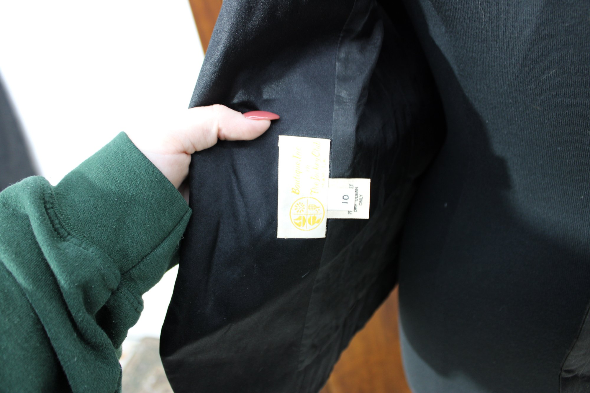 Designed with a structured silhouette, this jacket offers a refined look with classic cuff and hem detailing. Whether styled as a statement fashion piece or displayed as part of a vintage wardrobe collection, it delivers undeniable sophistication.