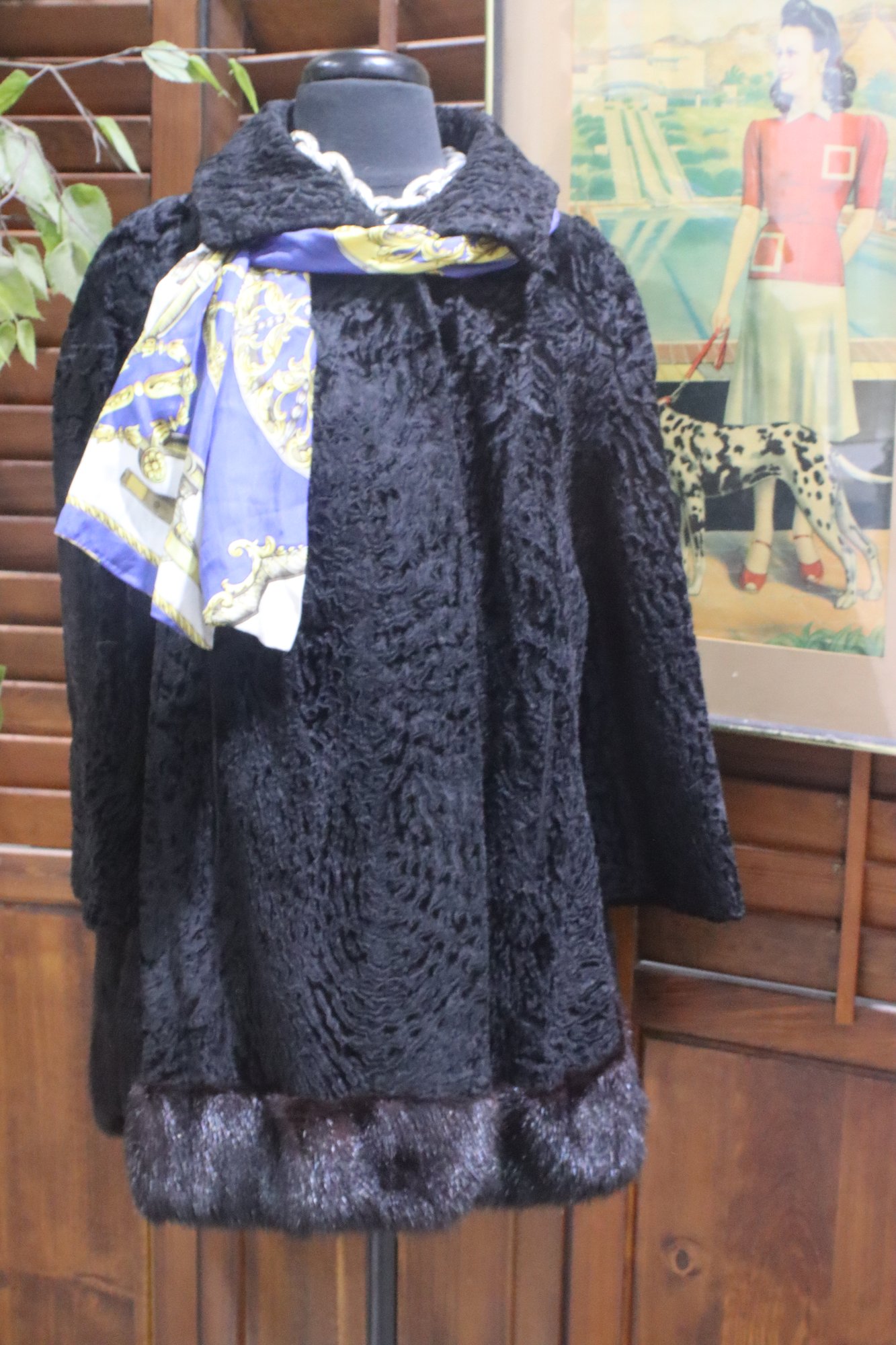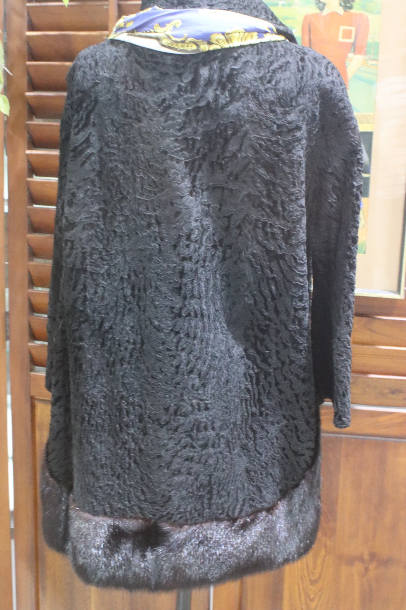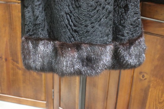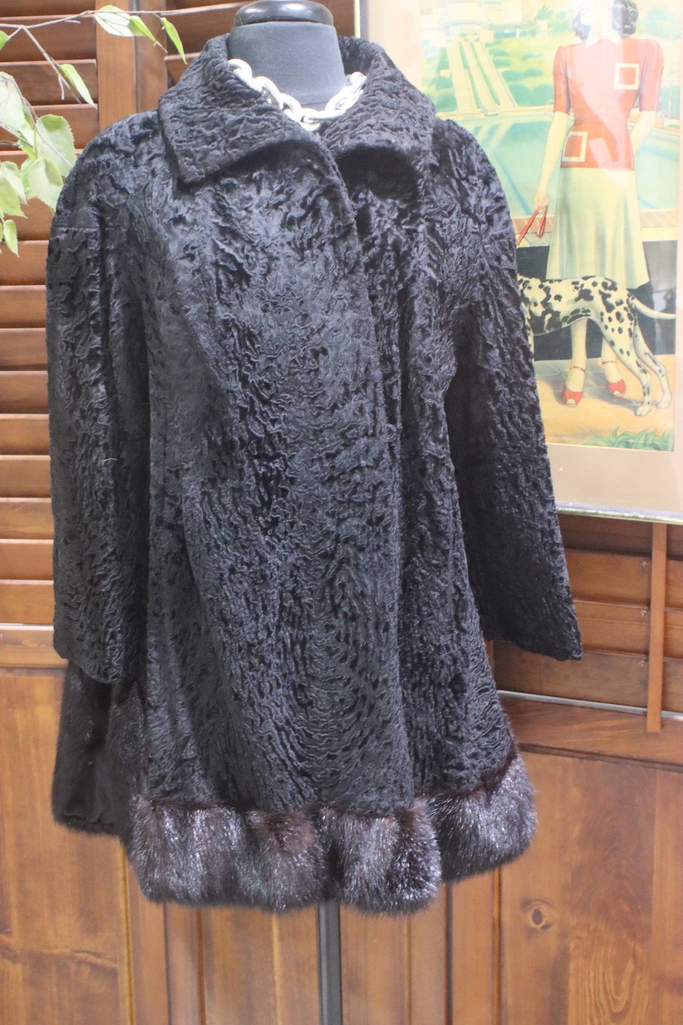 Embrace timeless vintage luxury with this stunning Persian lamb fur swing coat, accented with genuine mink fur trim at the hemline for added sophistication. With its classic A-line silhouette and plush texture, this coat exudes Old Hollywood glamour, making it a perfect piece for collectors and fashion lovers alike.