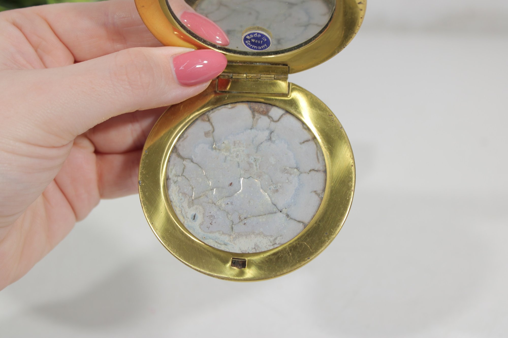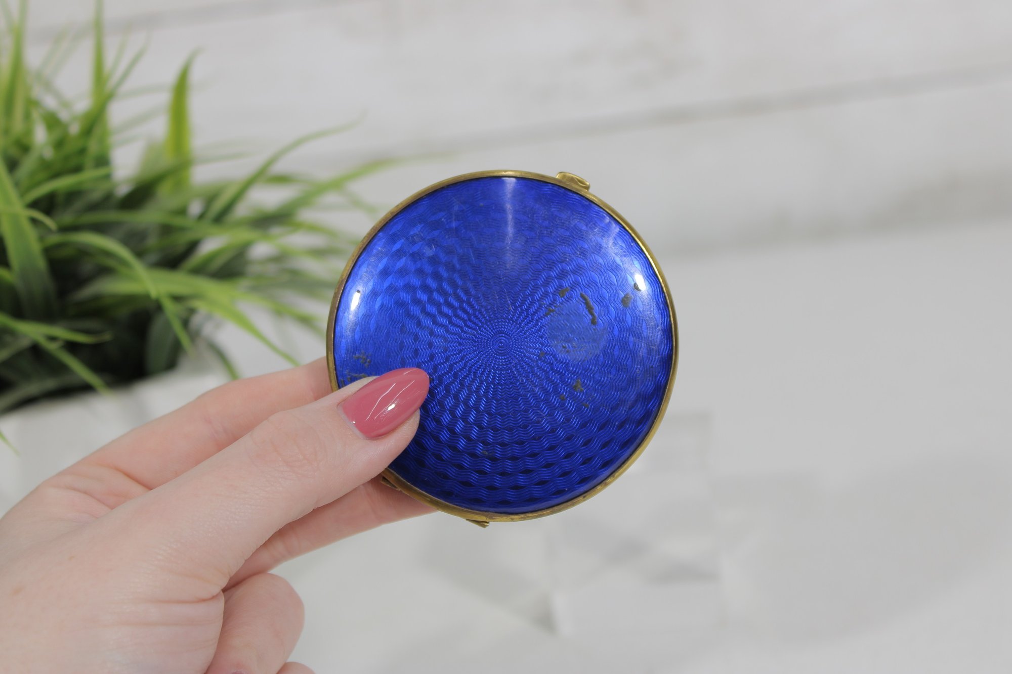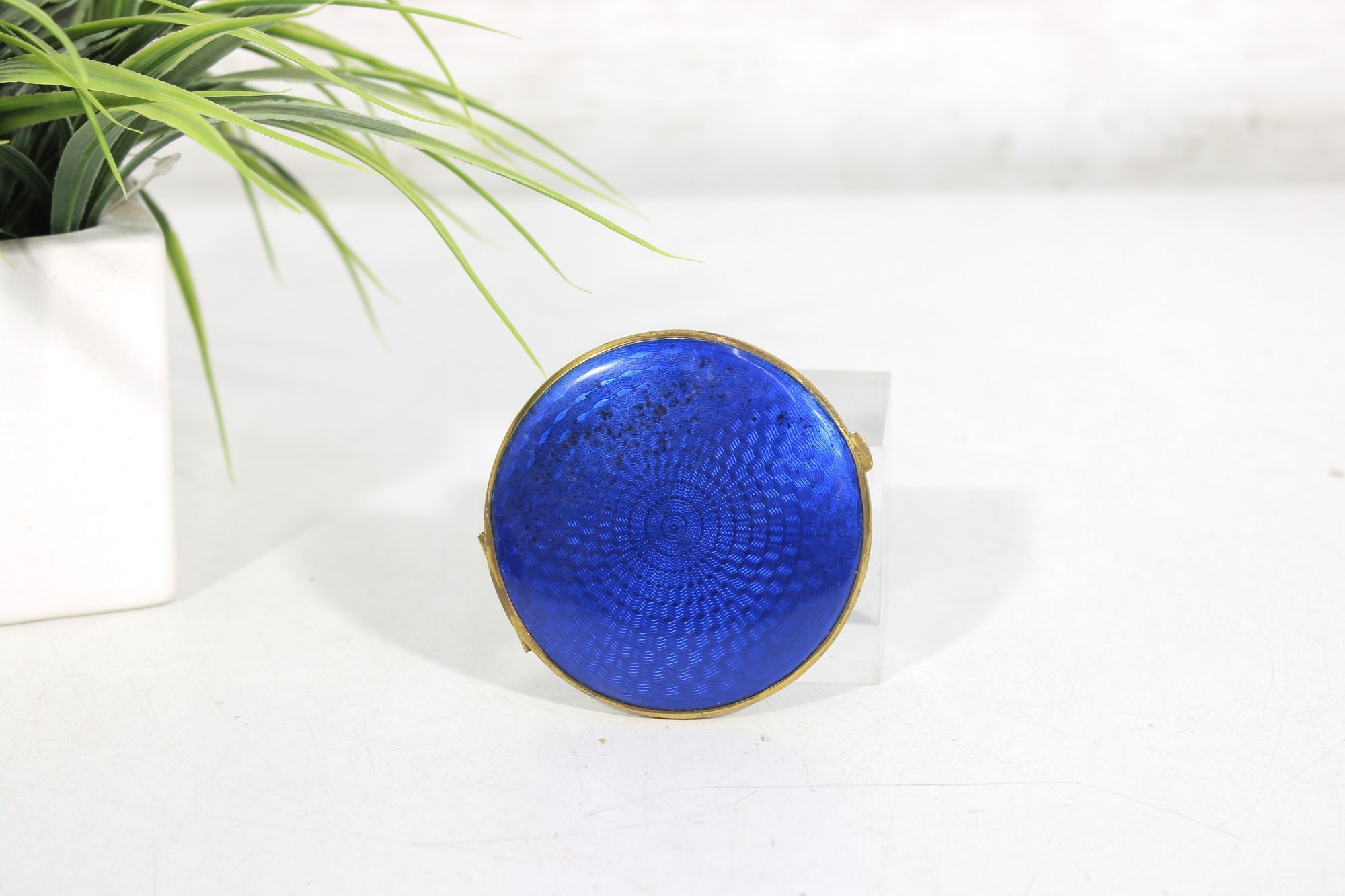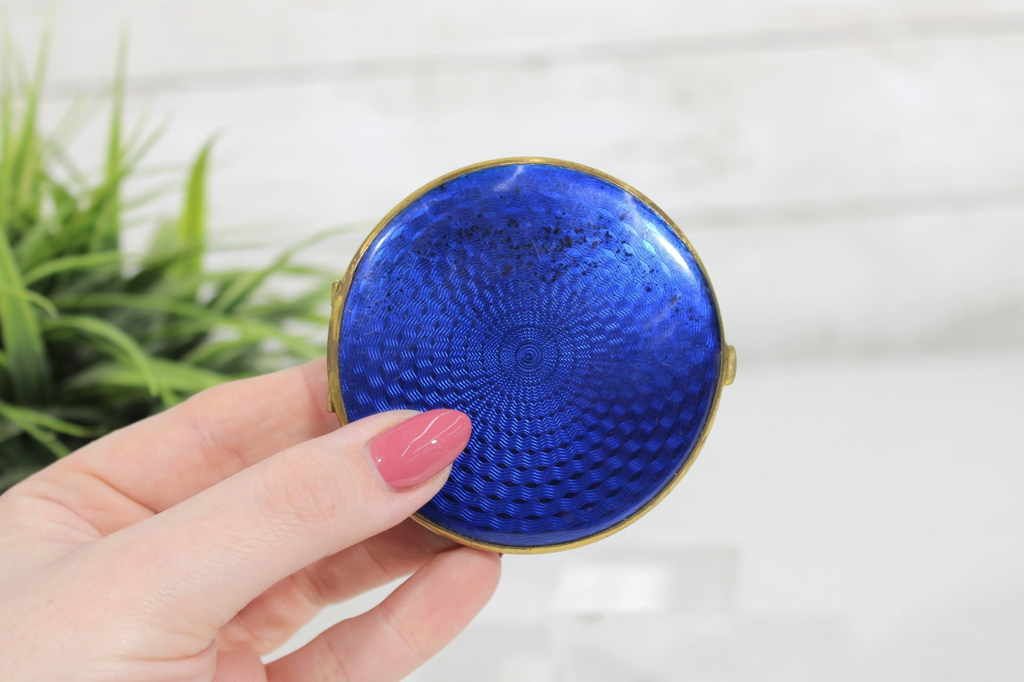 Vintage Blue Guilloch Enamel Mirror Compact -West Germany 3"