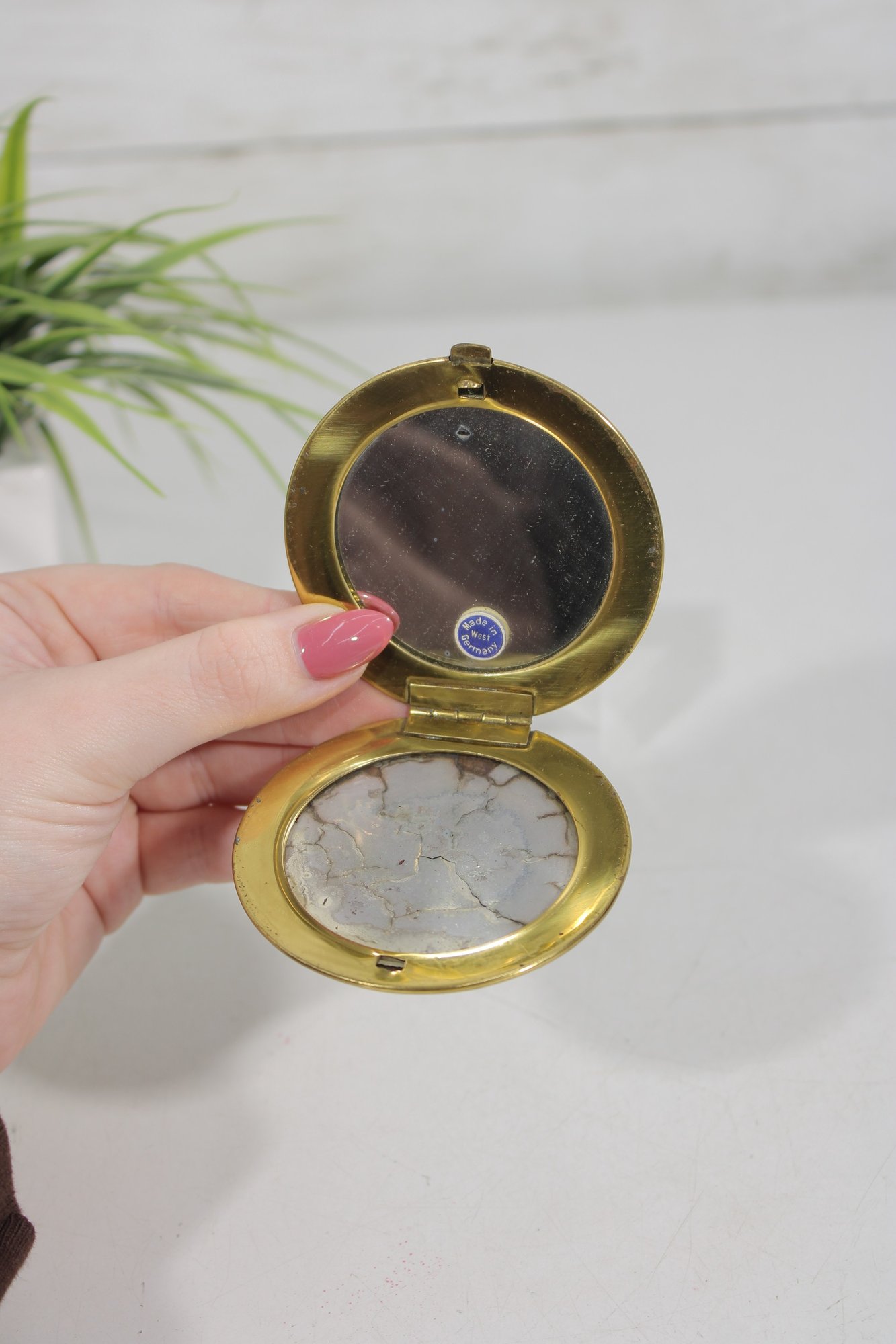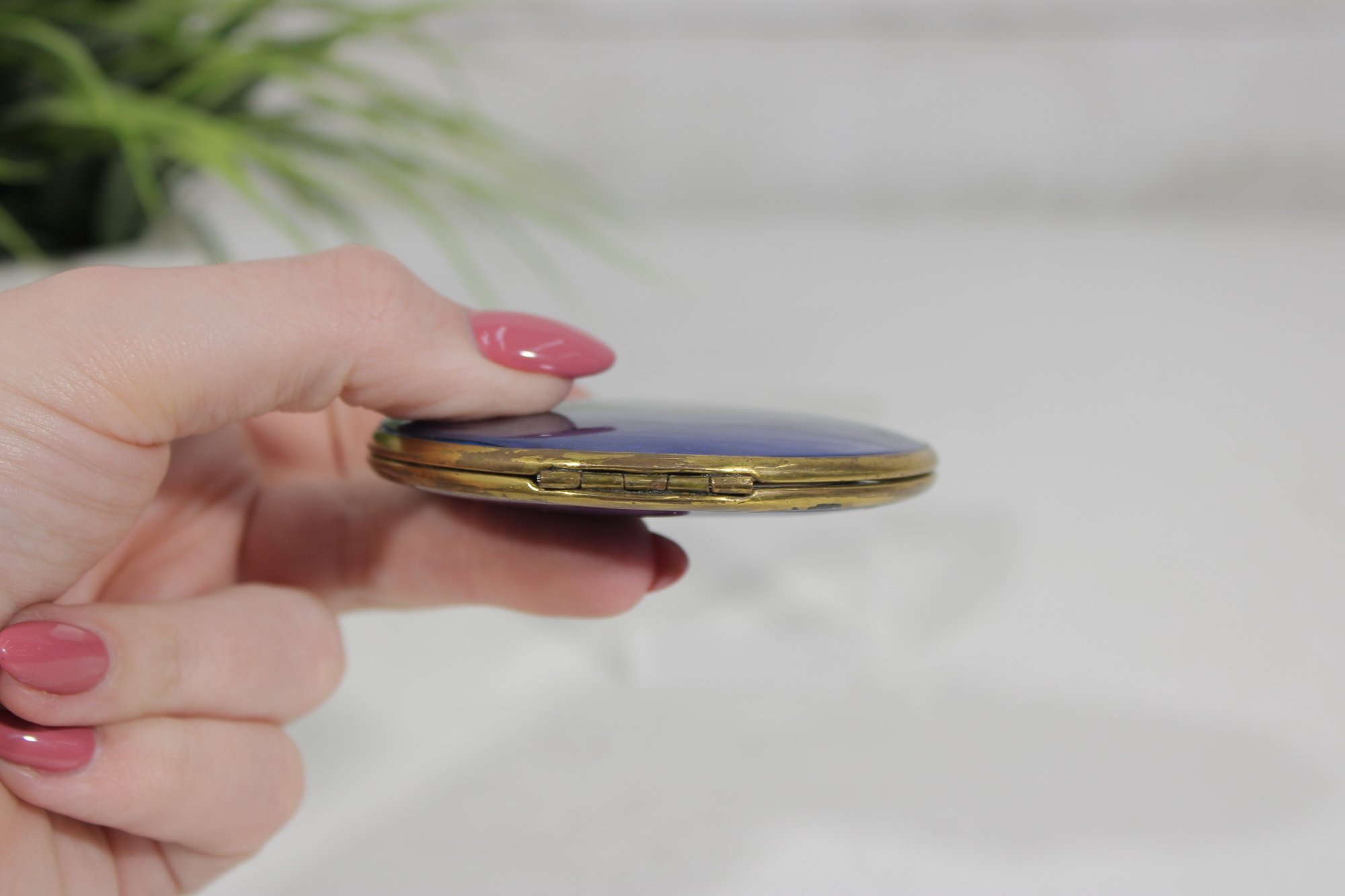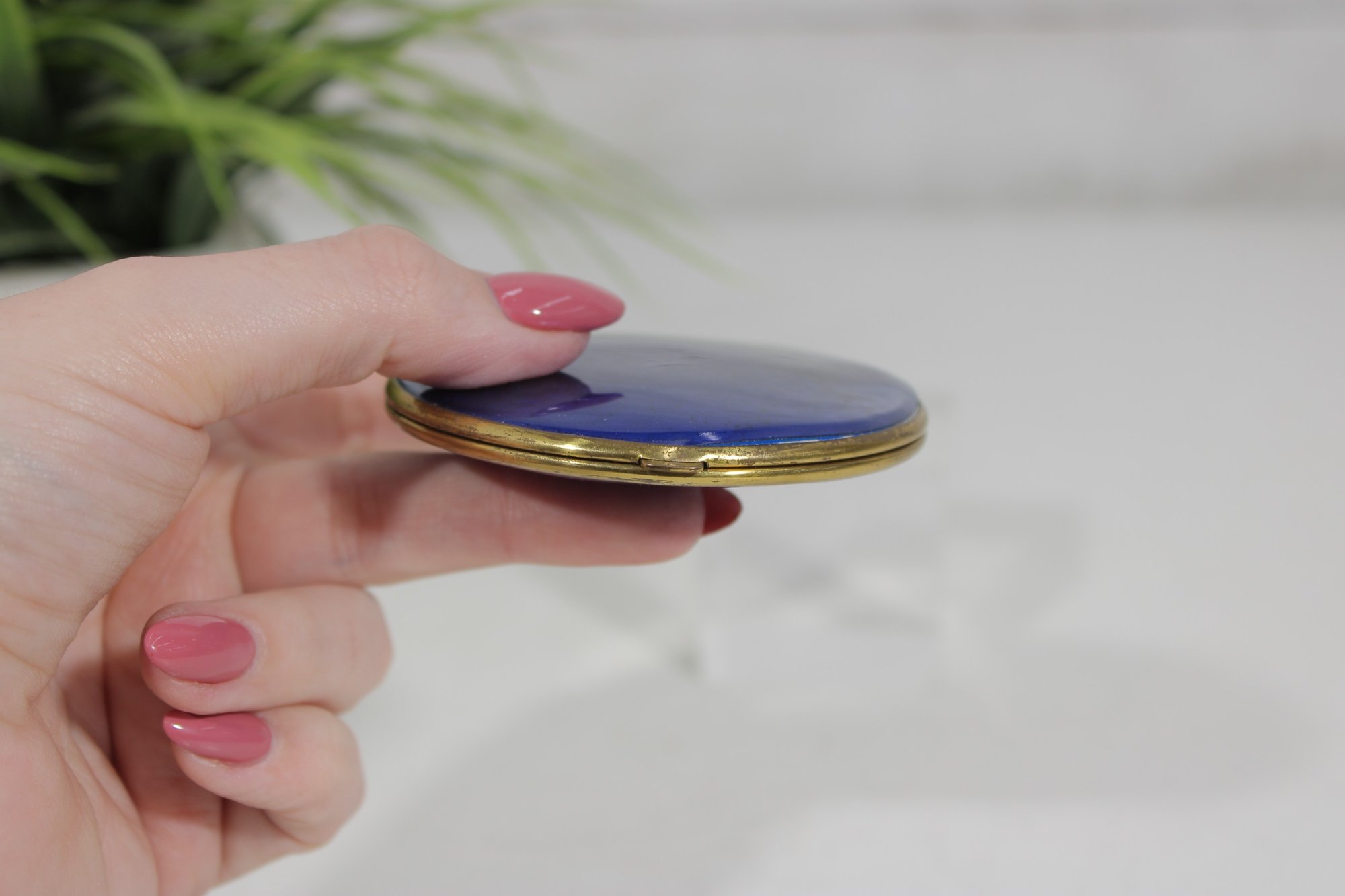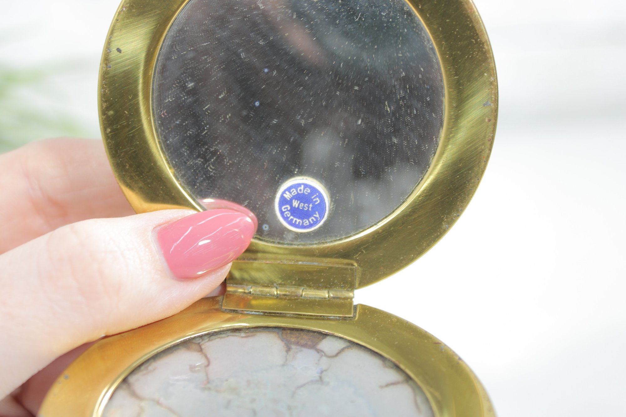 Vintage Blue Guilloch Enamel Mirror Compact -West Germany 3"