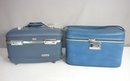 Vintage Blue Train Case Lot Samsonite & Combination Lock Cosmetic Luggage