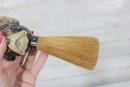 The brush portion features natural bristles, suggesting it was likely used as a clothes brush, crumb brush, or small whisk-style brush. The combination of the sculpted dog handle and practical brush makes it both decorative and functional.