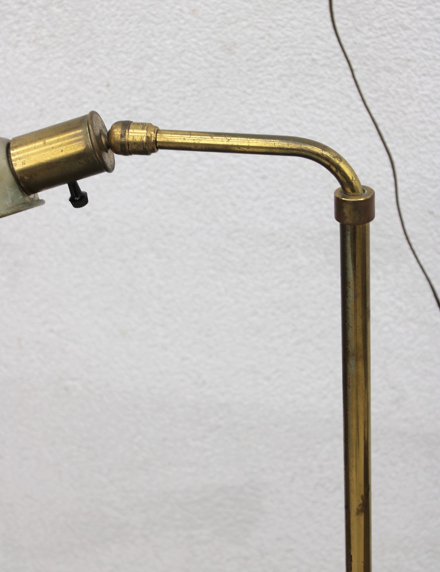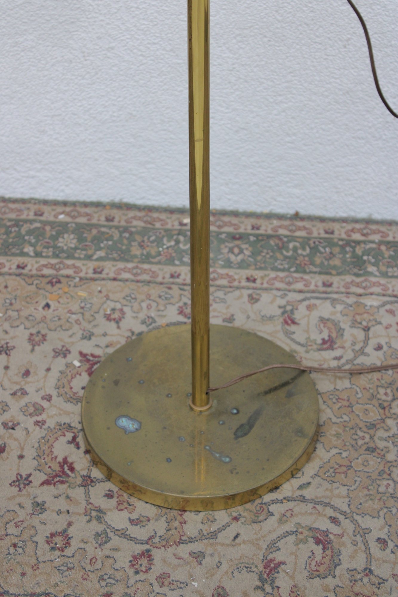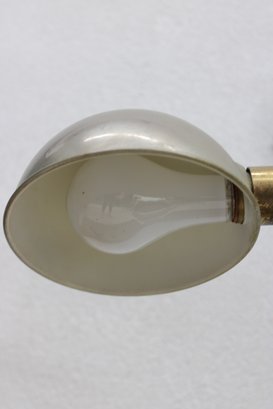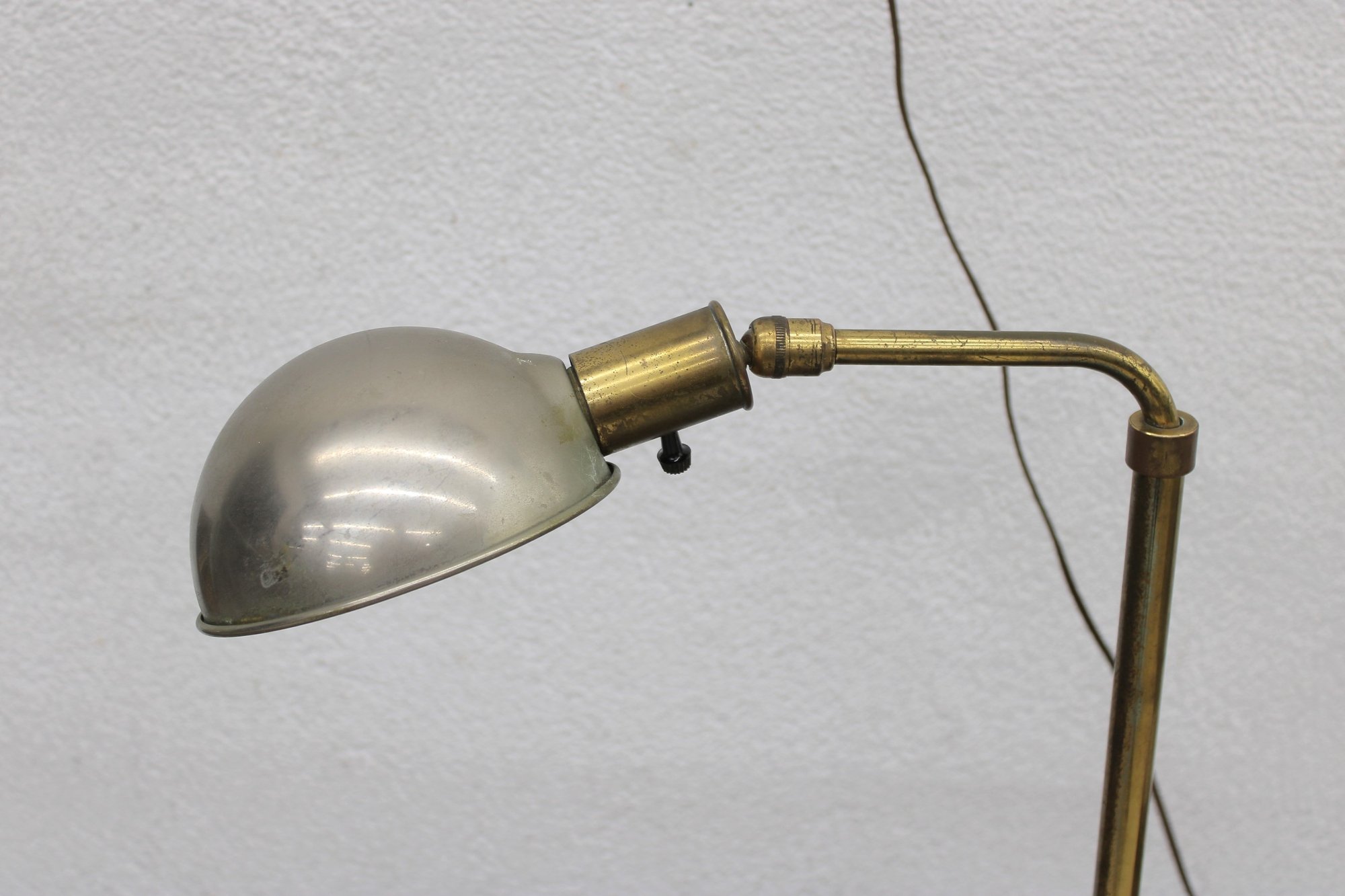 Vintage floor lamp featuring a classic mid-century modern design with a brass stem and adjustable arm paired with a sleek dome shade. The combination of warm brass and the soft metallic shade creates a timeless, understated look that fits effortlessly into a variety of interiors.