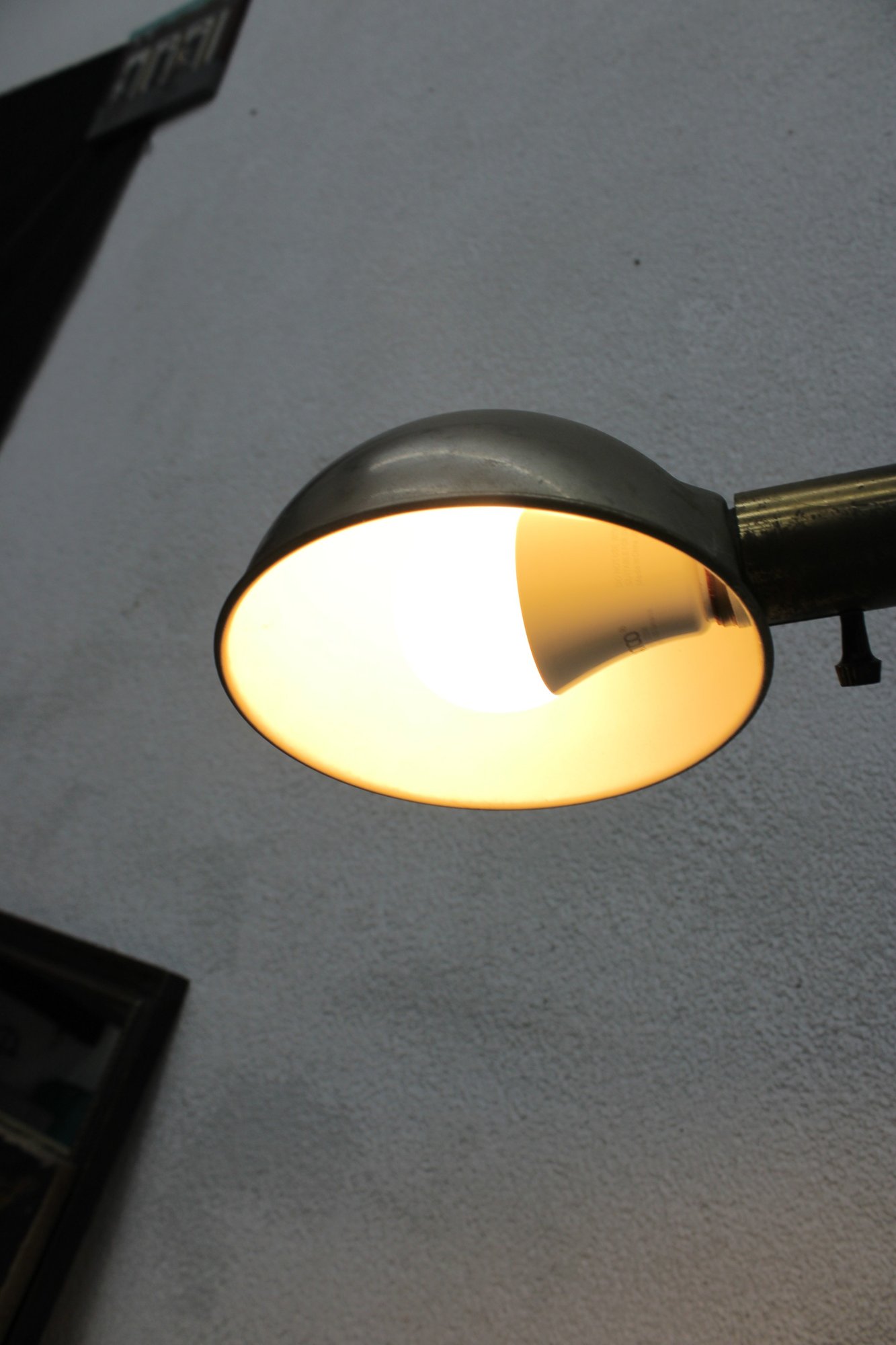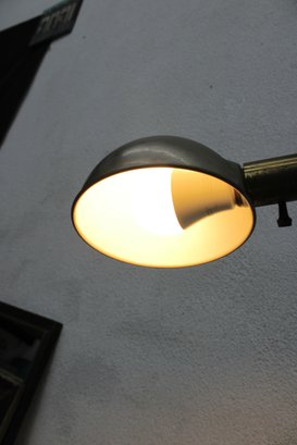 The adjustable arm allows for directional lighting, making it ideal for reading, task lighting, or accent illumination. The dome shade provides a focused, downward glow, as shown when lit.