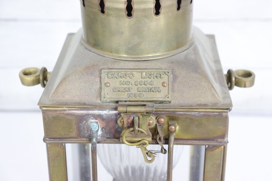Beautifully crafted and full of maritime charm, this vintage brass cargo lantern is marked “Cargo Light No. 4064 – Gray-Larkin Co. N.Y.C.”. Originally designed for ship use, this solid brass lantern has been converted to electric, preserving its classic nautical look while adding modern functionality.