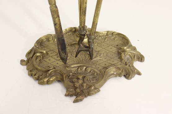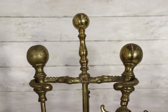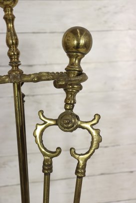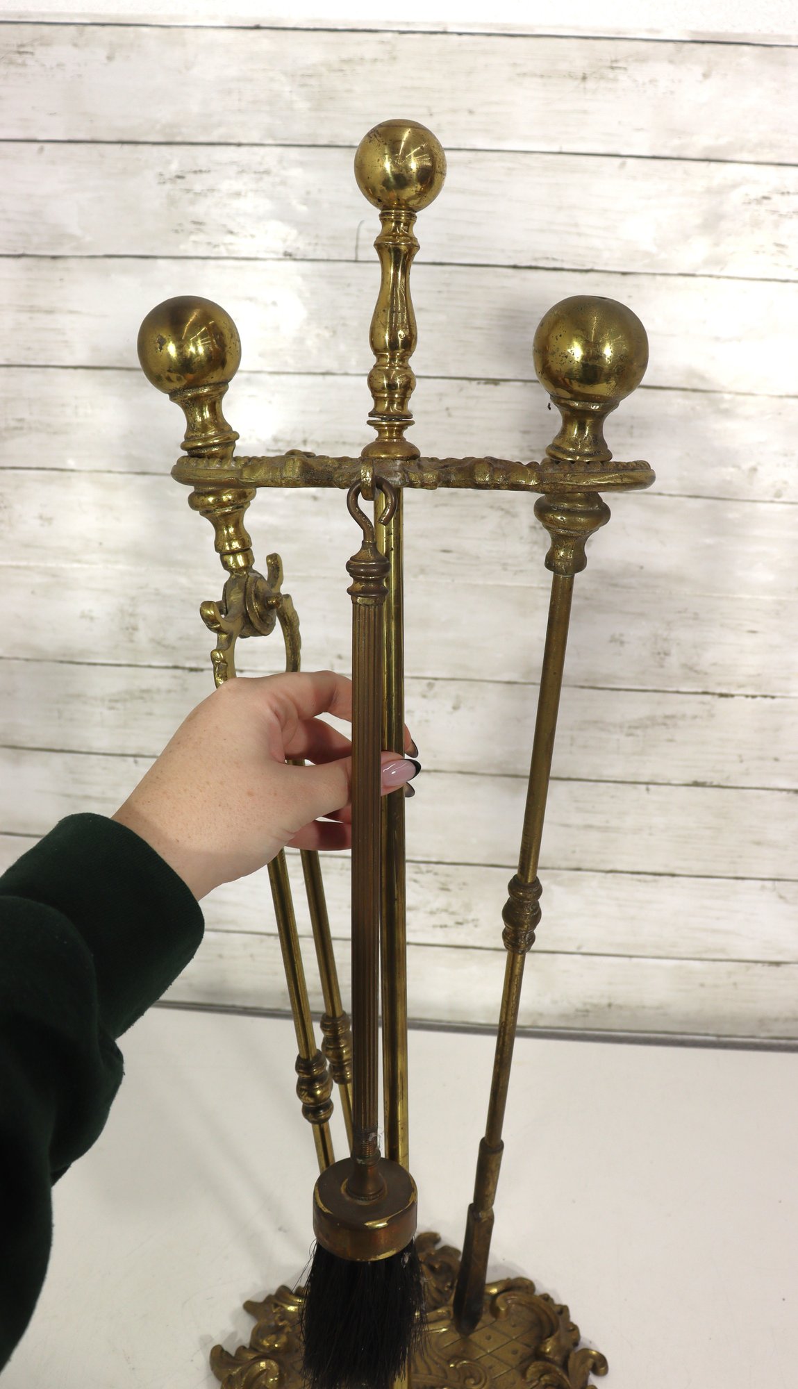 Vintage Brass Fireplace Tool Set With Ornate Base 28.5 Tall