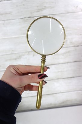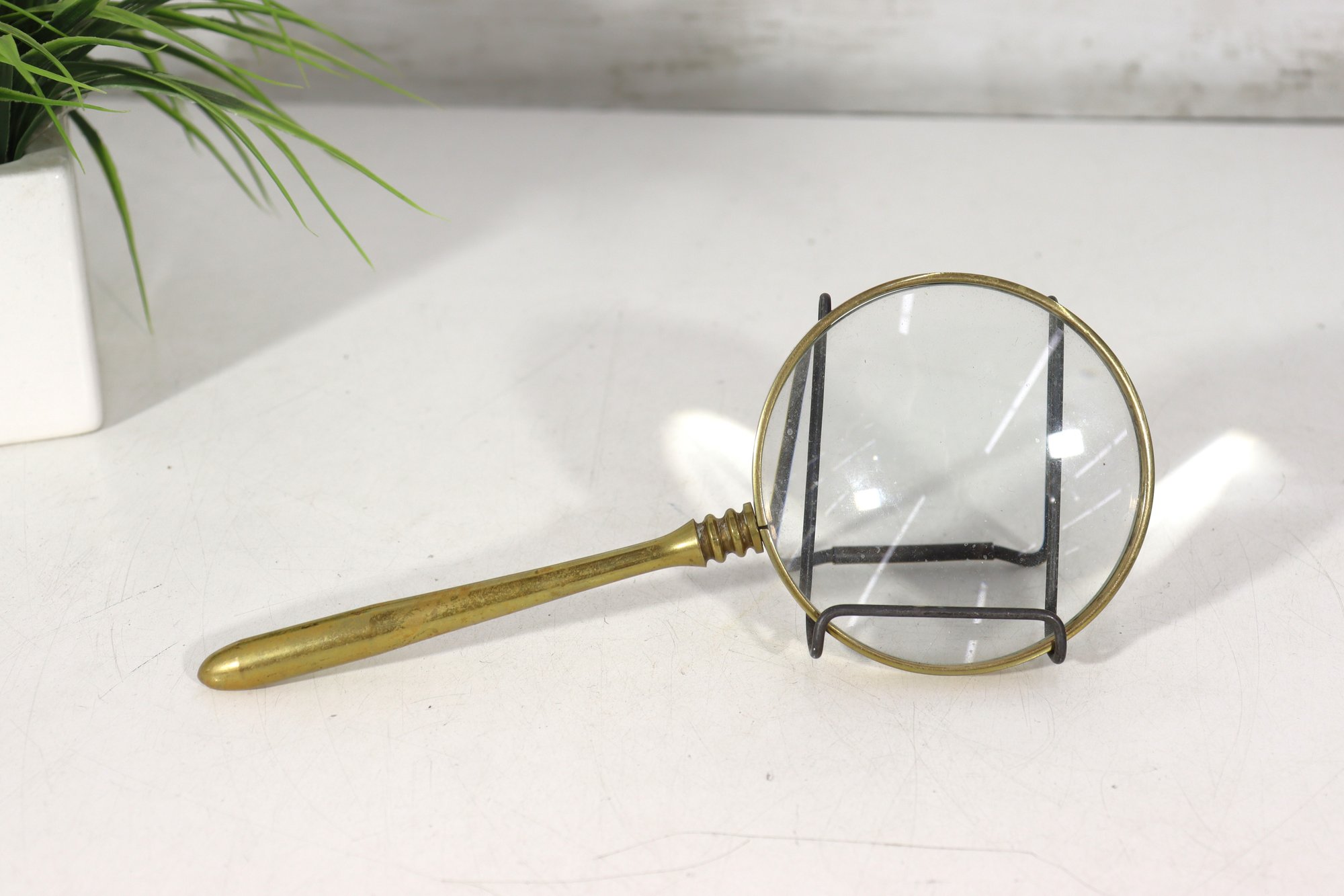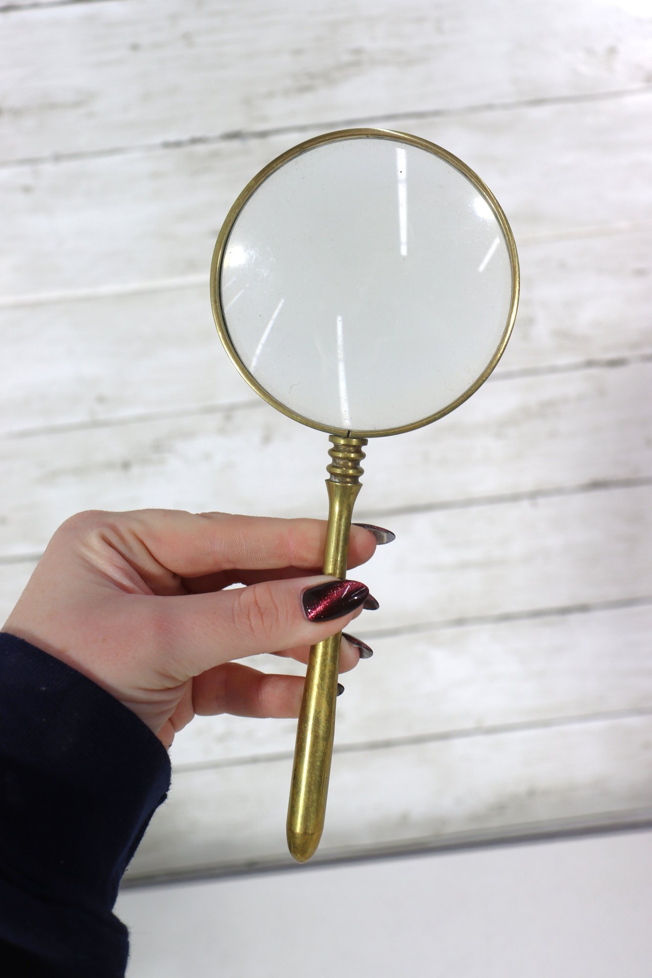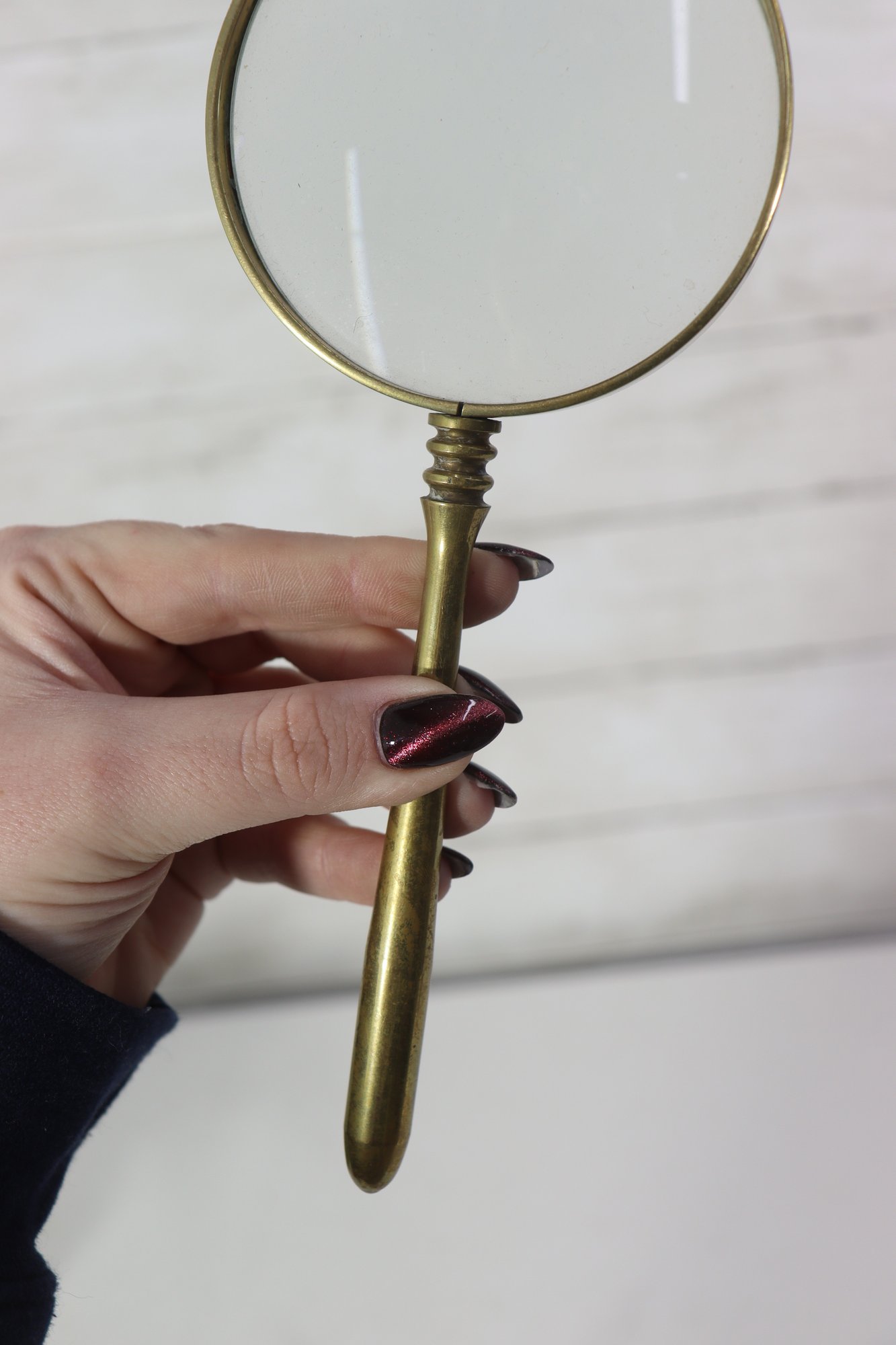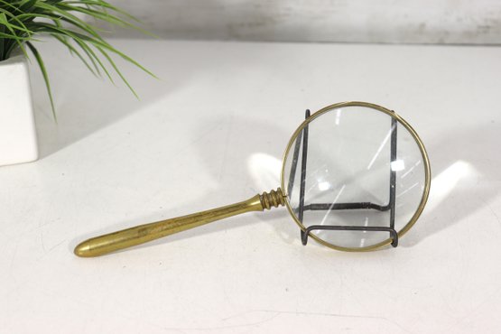 Vintage Brass Handheld Magnifying Glass With Stand 9 H