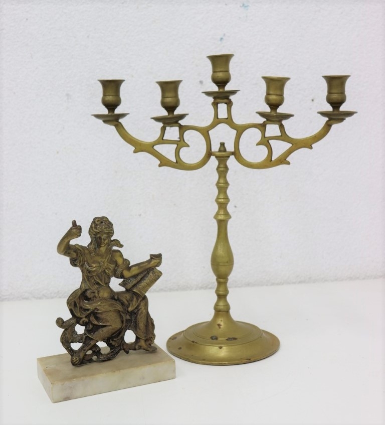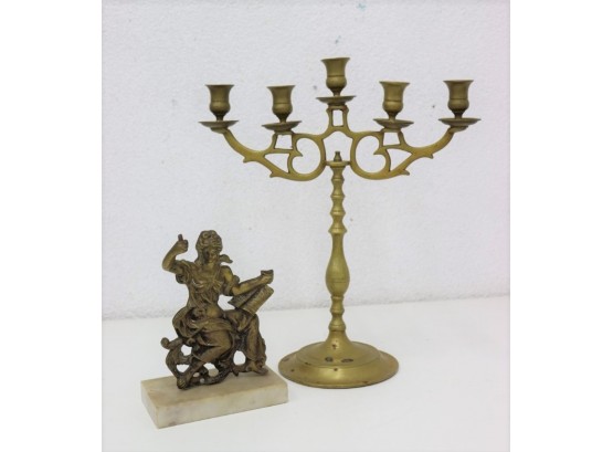 Vintage Brass Lot . Good Quality Heavy Candelabra , Beauty On Marble Base