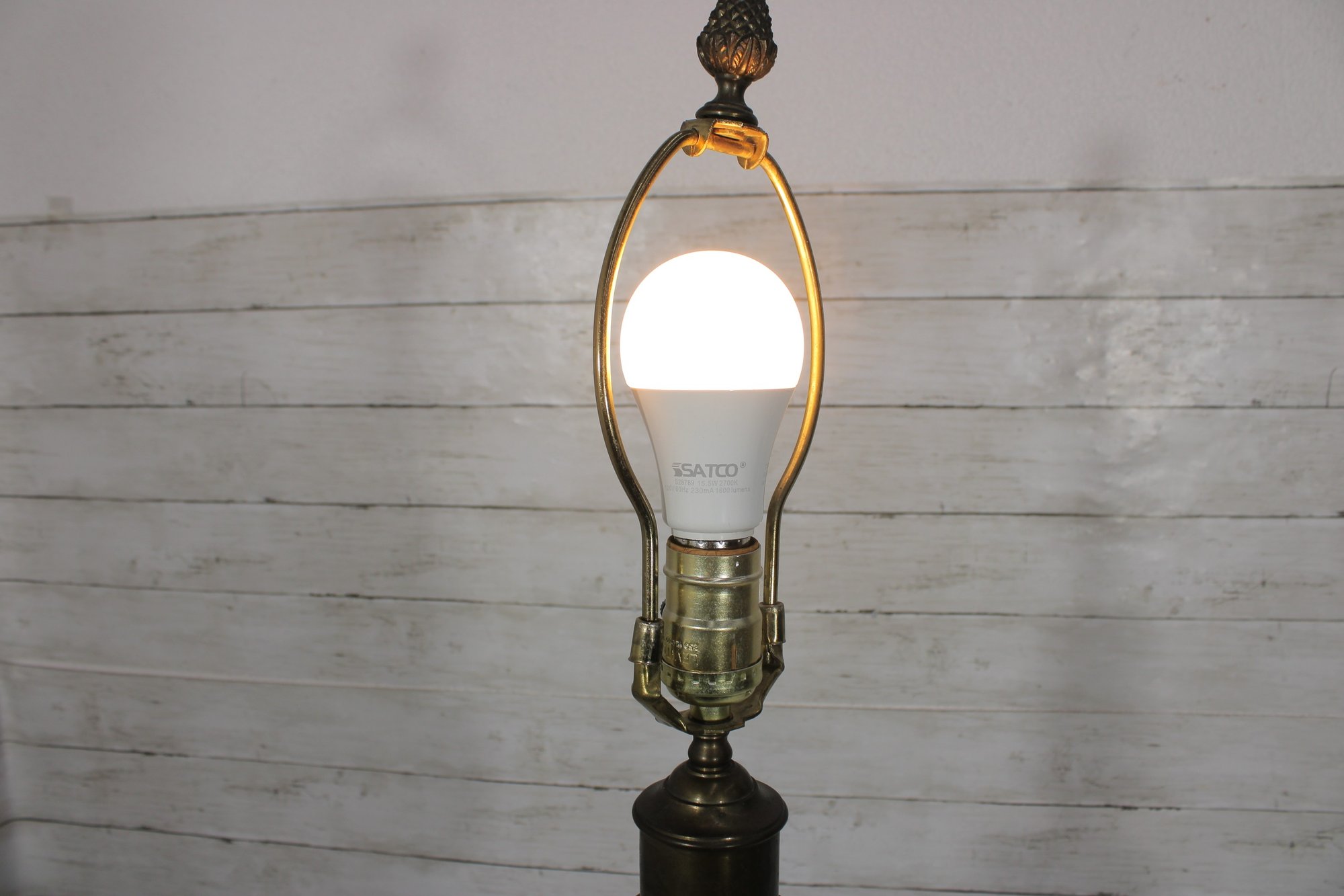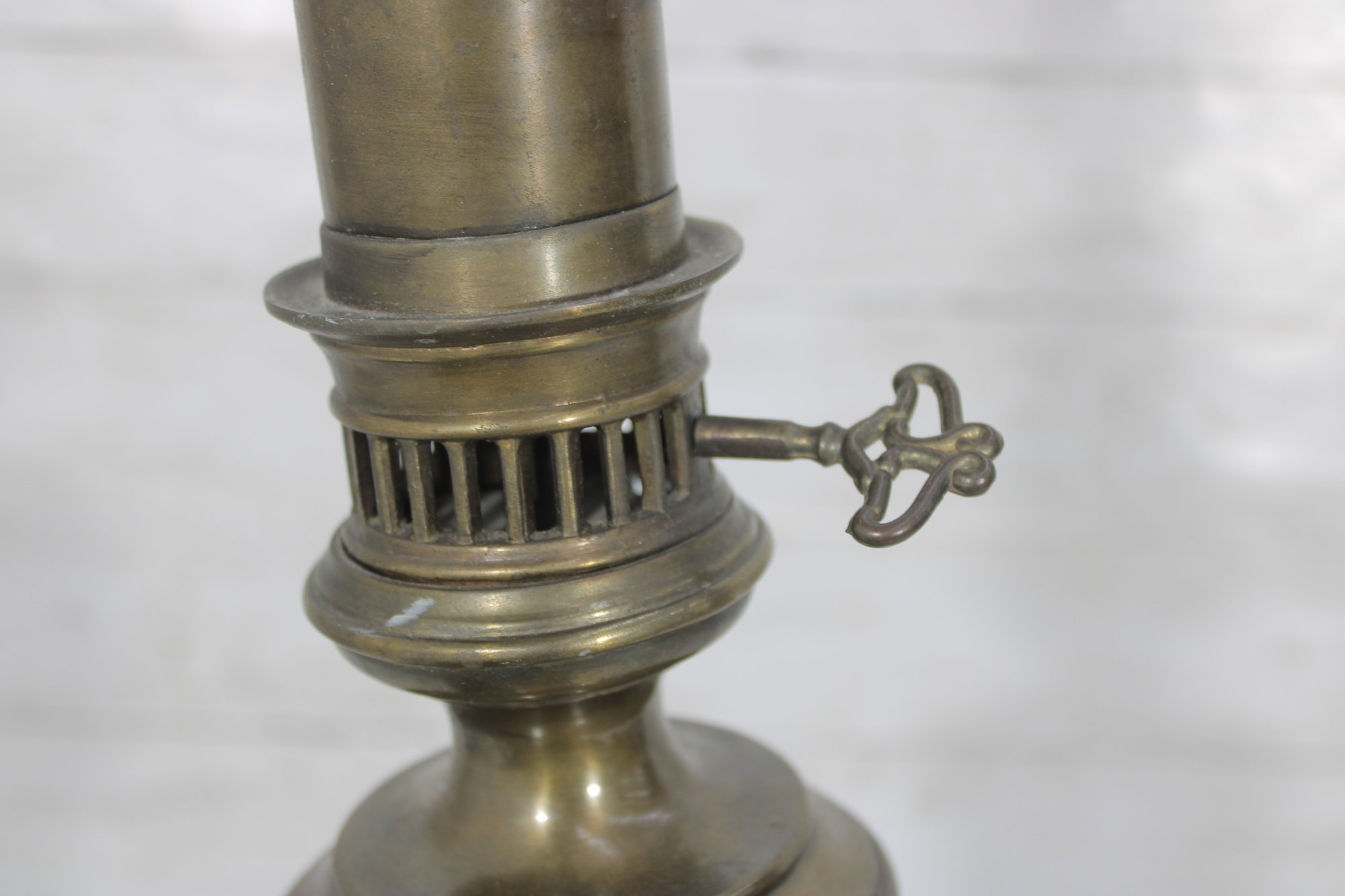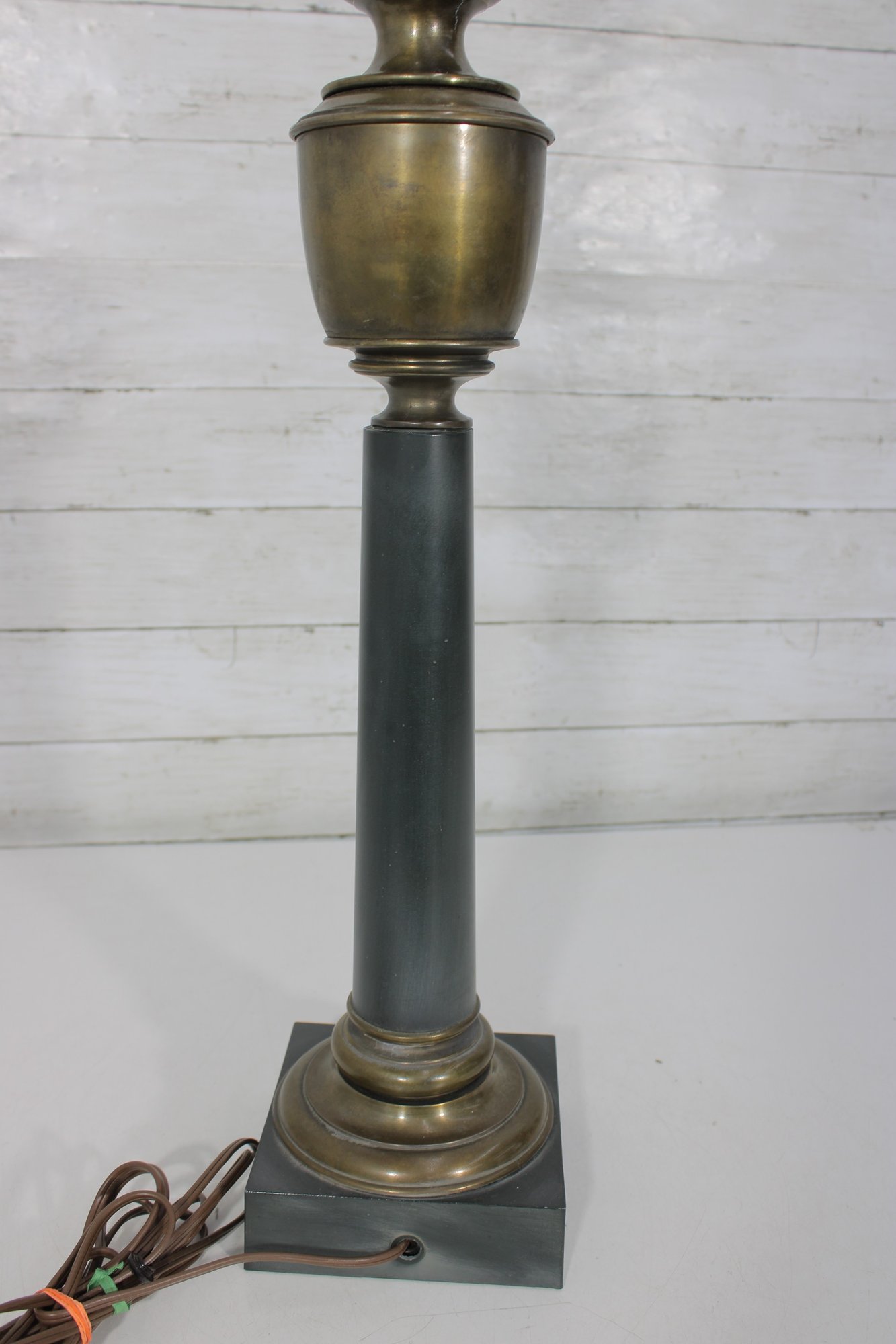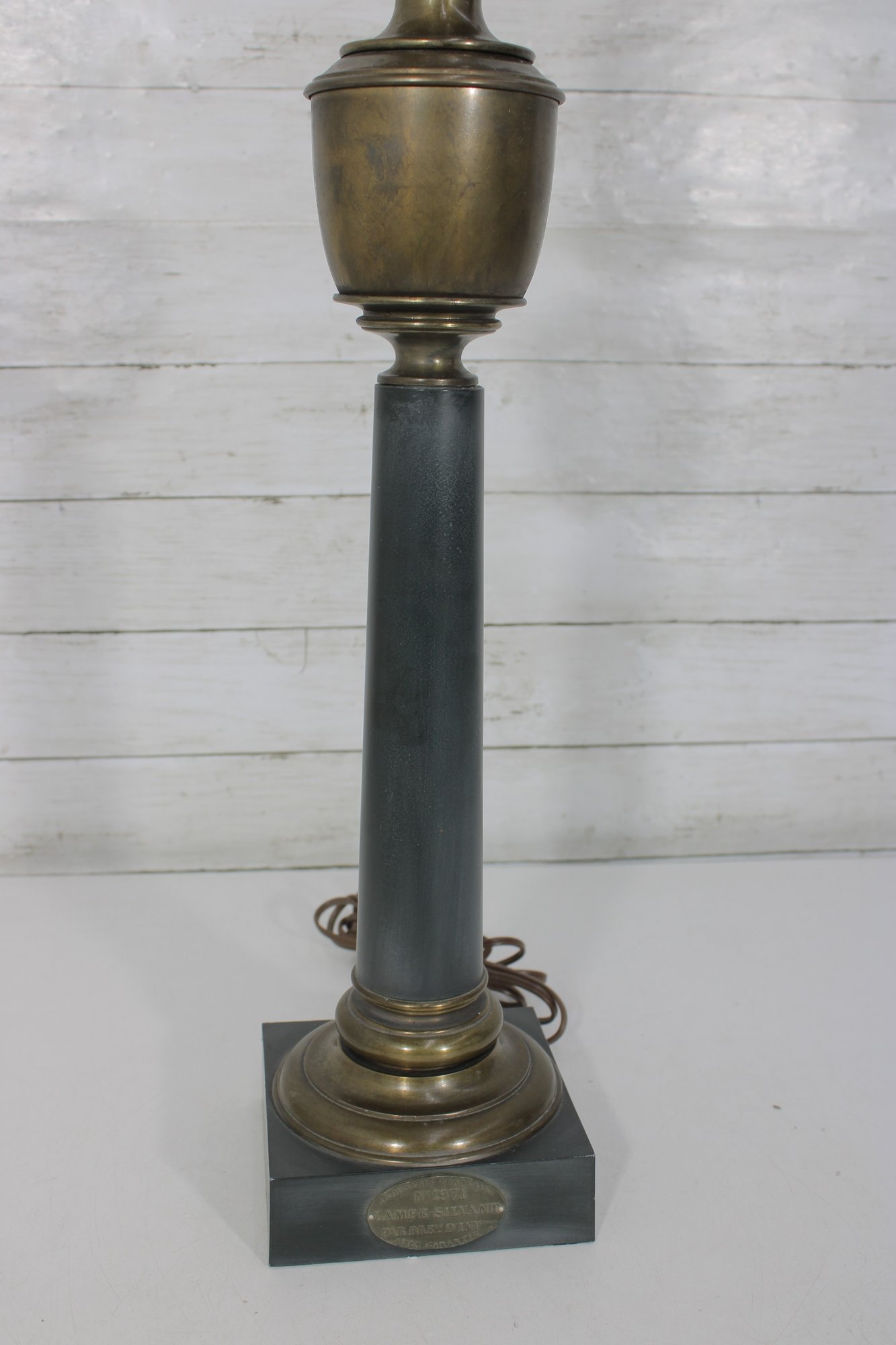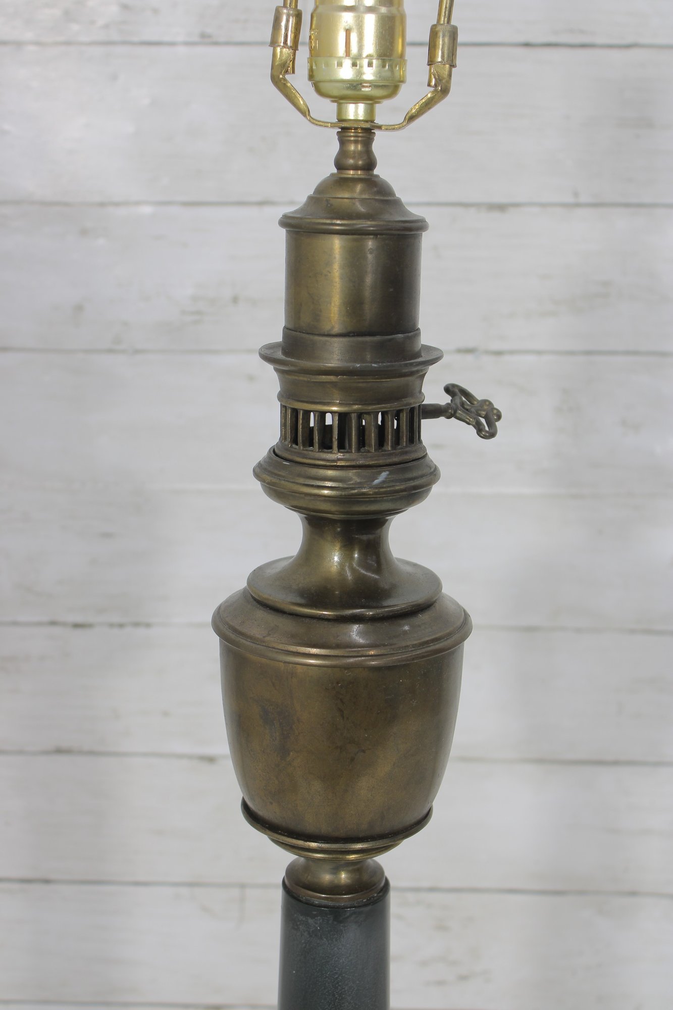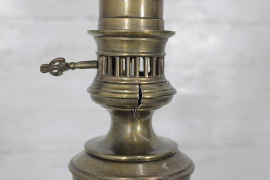 **There is a visible crack in the brass body (see close-up photos), which does not affect functionality. The lamp has been tested and works as shown.