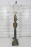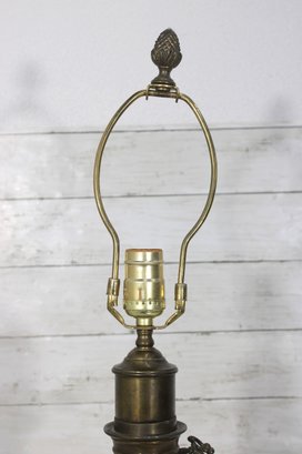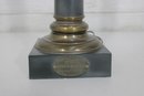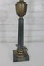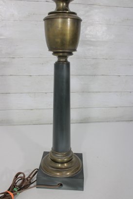 This stately lamp features a classical column-style design with a solid square marble base and decorative brass detailing throughout.