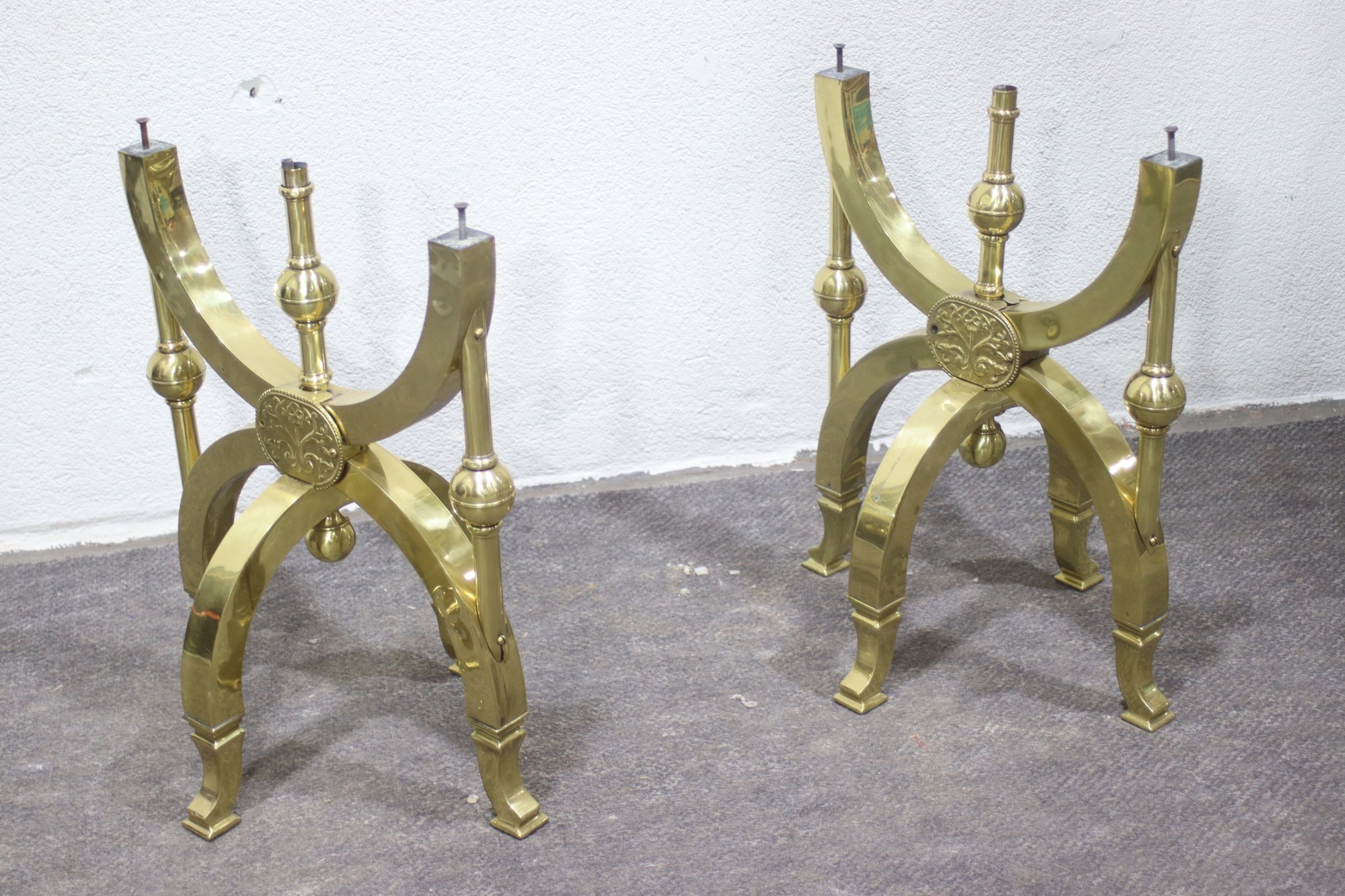 This stunning vintage brass table base features a decorative curved design with intricate detailing, once supporting a glass top. Perfect for those looking to replace the top or repurpose it into a unique table piece.