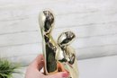 The abstract design gives the piece a mid-century modern aesthetic, making it a beautiful decorative accent for shelves, mantels, desks, or display cabinets. The warm brass tone reflects light nicely and adds a sophisticated touch to any décor.