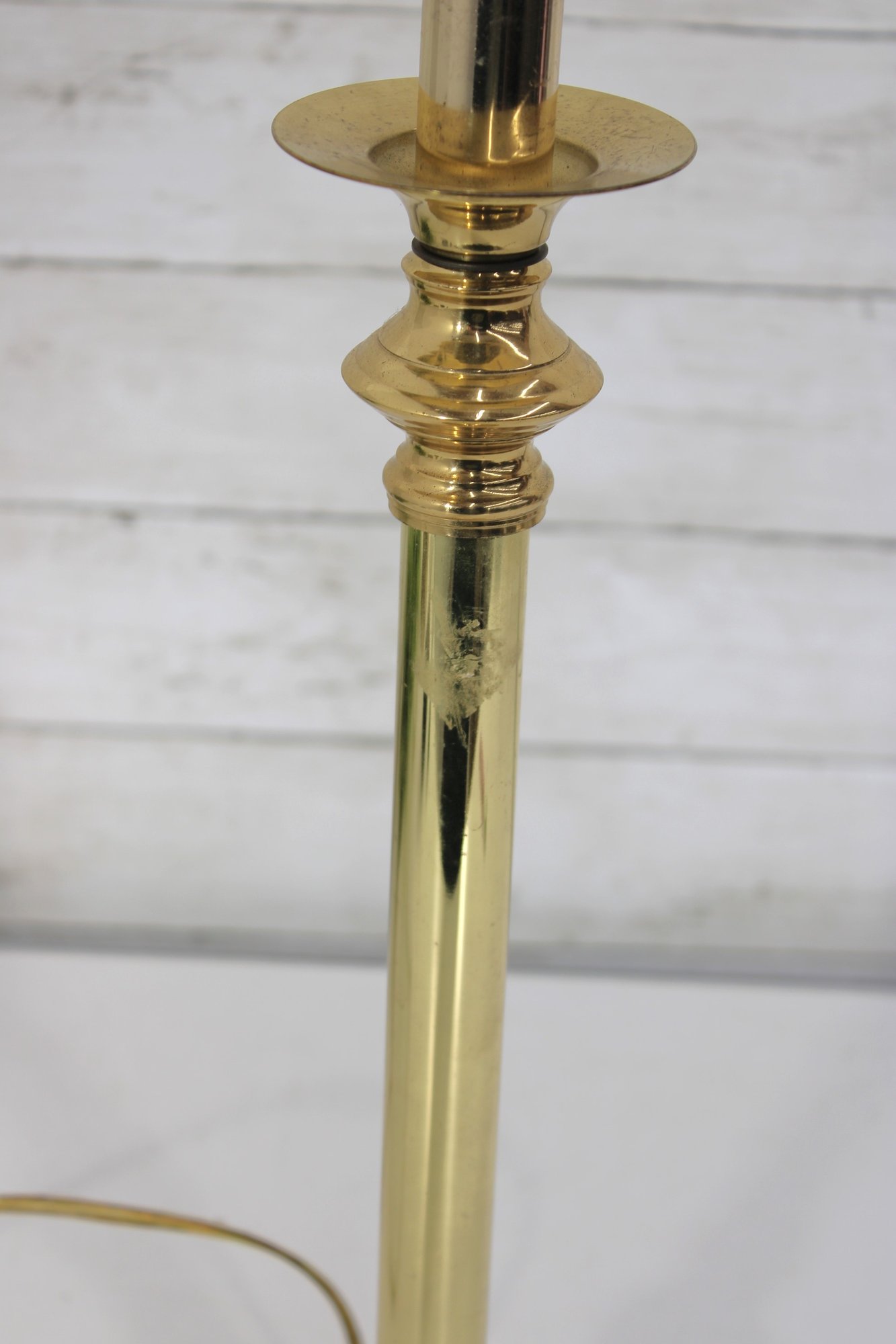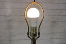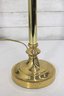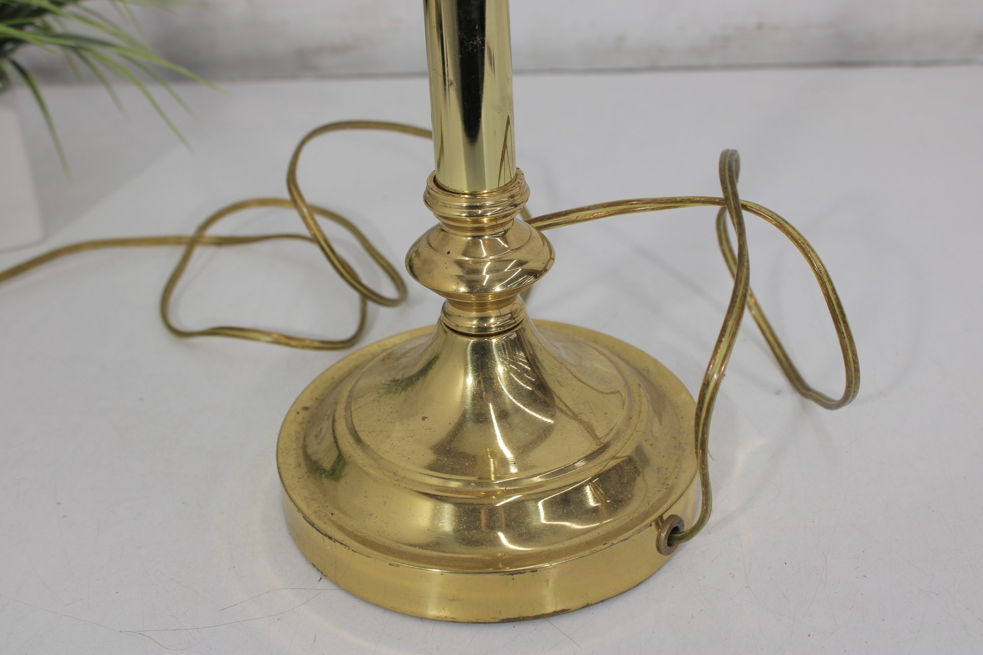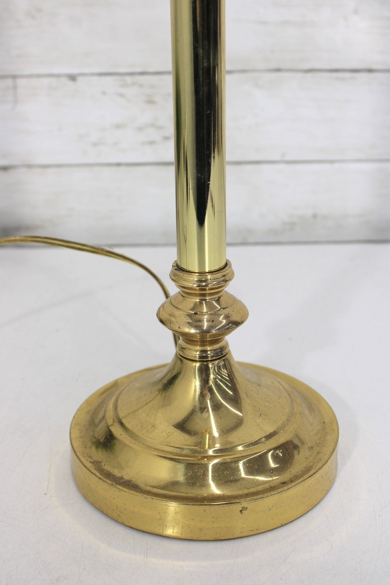 Classic vintage brass-tone table lamp featuring an elegant candlestick-style design with a round weighted base and traditional profile. The timeless look makes this lamp a versatile addition to traditional, vintage, or transitional décor settings.