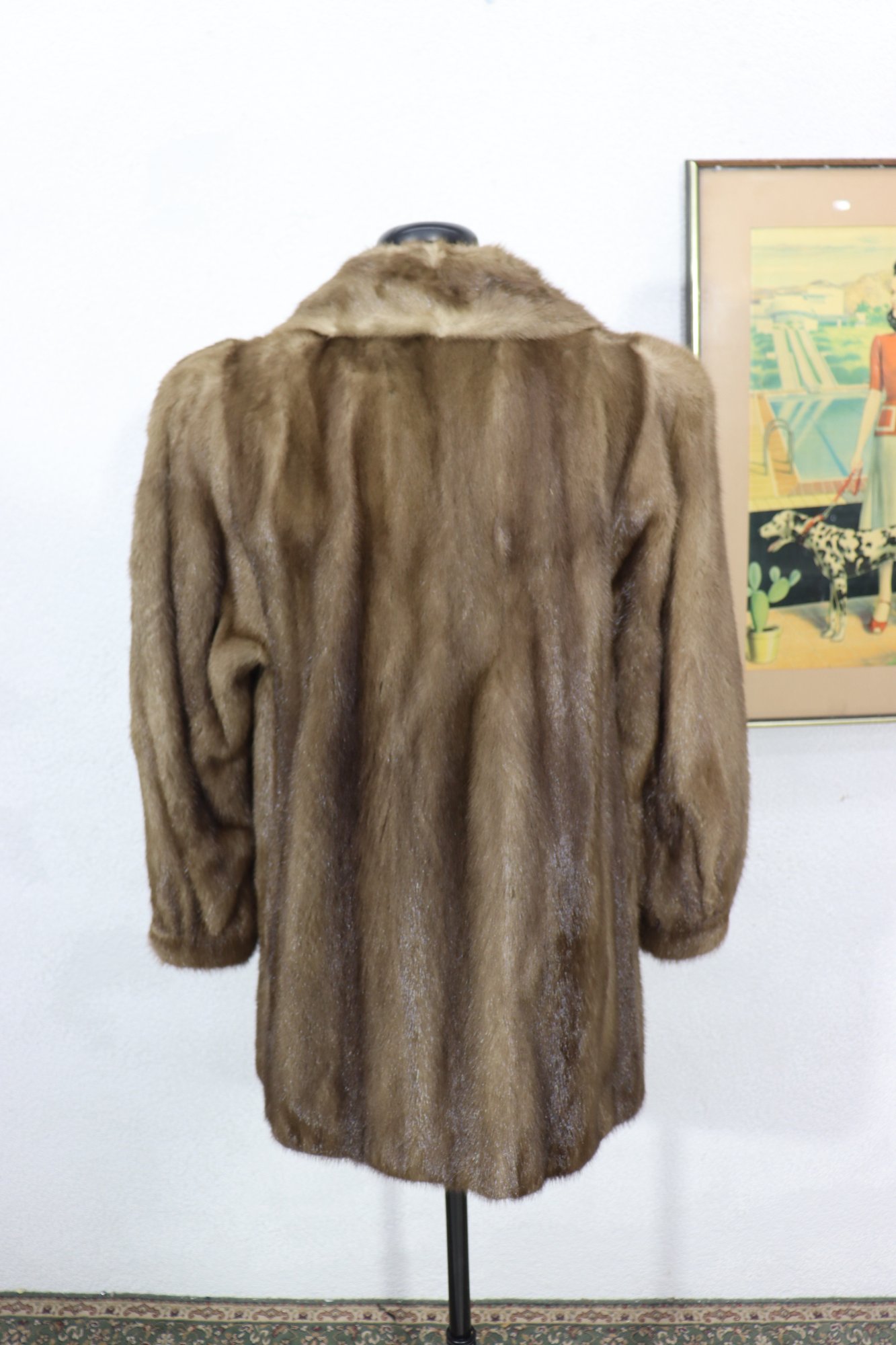 Beautiful vintage brown fur coat in a rich medium brown tone with a soft, luxurious feel. Classic mid-century style with wide collar, long sleeves, and timeless silhouette. Perfect for vintage fashion collectors, stylists, costume wardrobe, winter glam, pin-up styling, or holiday photo shoots.