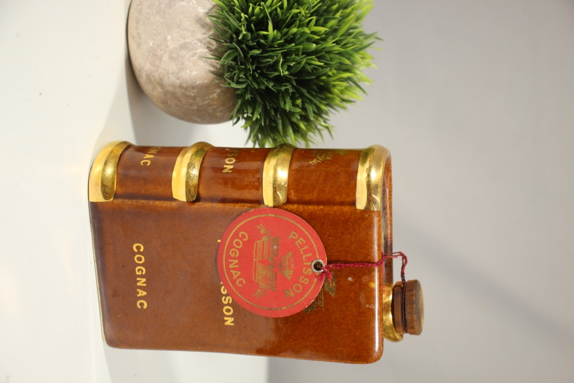 Vintage Brown Gold Ceramic Bottle Book Decanter Pellisson Cognac