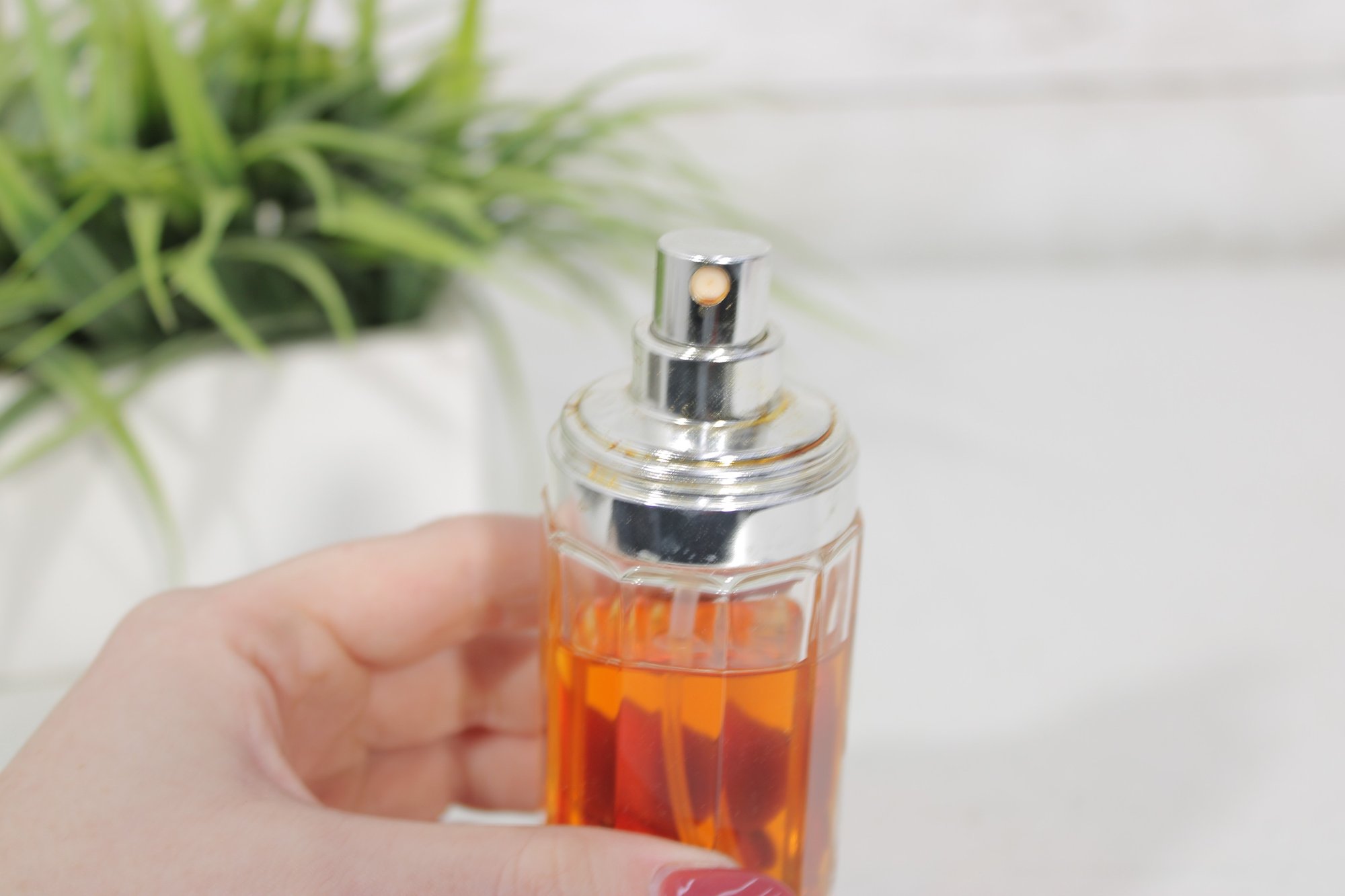 Pre-owned / used condition with visible remaining fragrance (please review photos carefully for exact fill level). Spray mechanism is intact and functional. Light cosmetic wear consistent with age and normal handling. No box included.