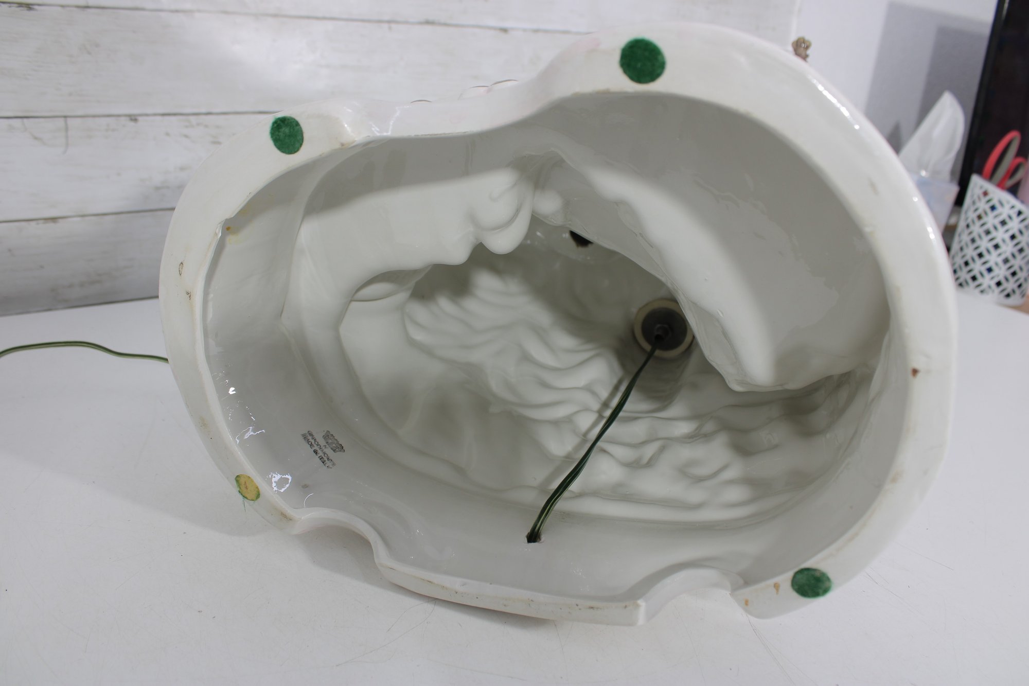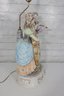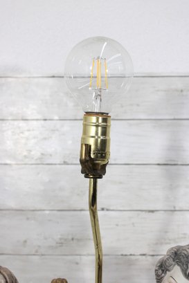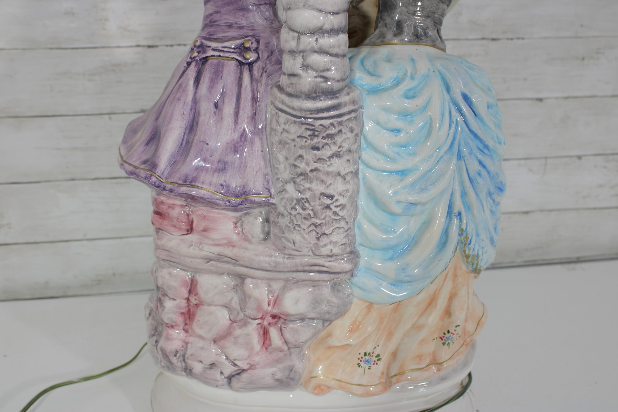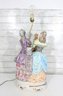 Standing approximately 30" high, this statement table lamp combines functional lighting with sculptural artistry. The ornate base and expressive figures make it an eye-catching addition to traditional, Victorian, or romantic décor settings.