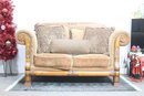 The mix of craftsmanship and cozy design makes this loveseat a versatile piece, perfect for a formal sitting room, bedroom, or reading nook.