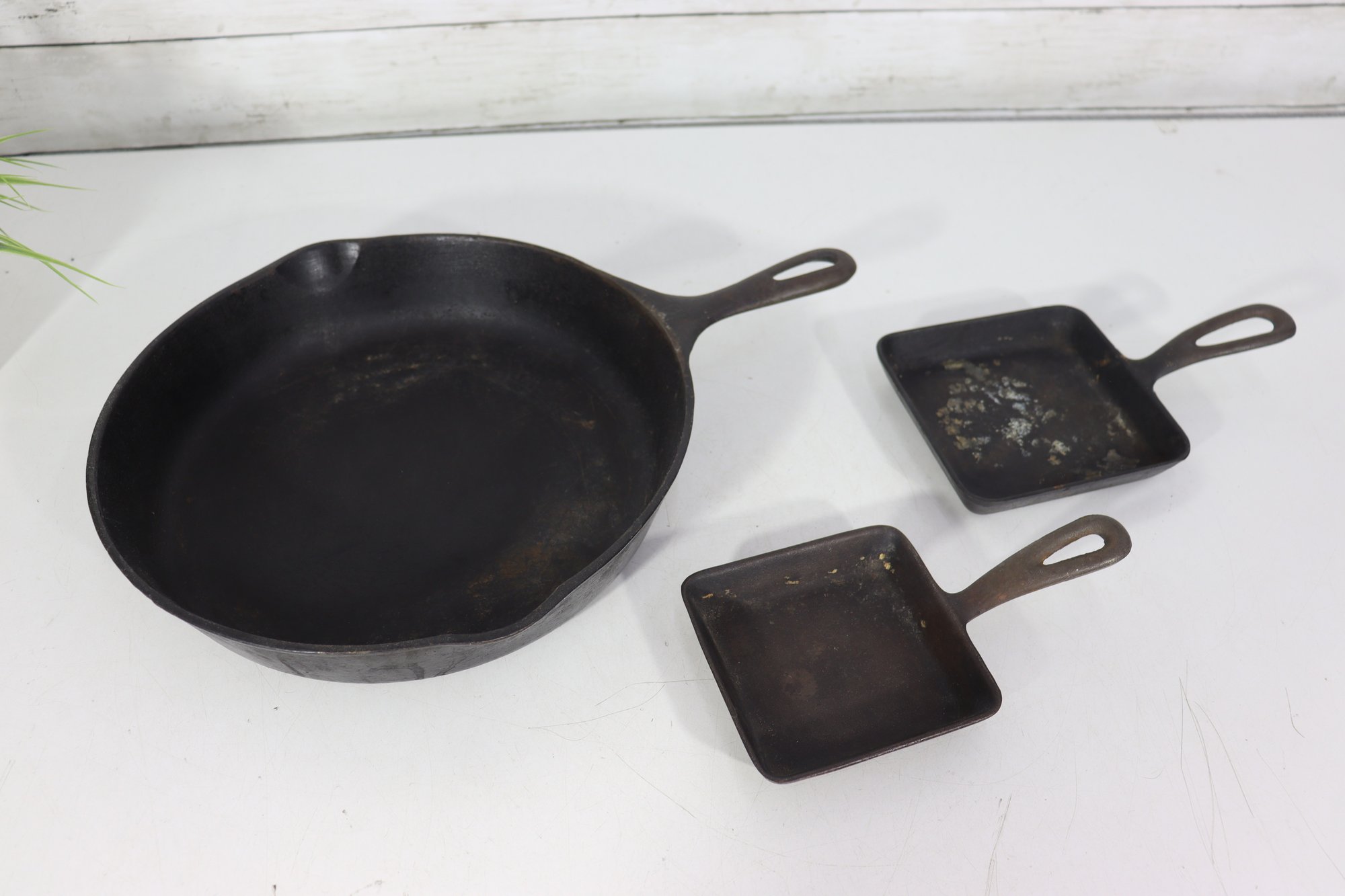 These heavy, well-made pieces showcase the classic durability and heat retention cast iron is known for. Perfect for collectors, restoration projects, or everyday cooking use once re-seasoned.