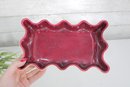 Its organic, wavy shape is a hallmark of mid-century design, making it both a functional serving piece and a stylish decorative accent. Perfect for use as a small pie pan, serving dish, candy tray, or display piece.